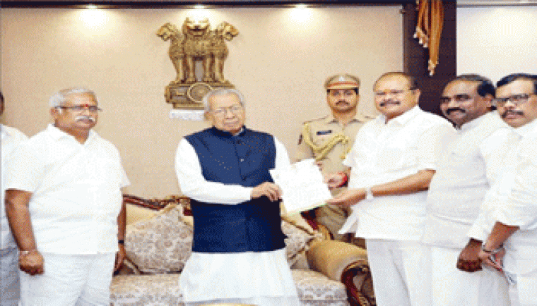 ఆంధ్రప్రదేశ్ రాష్ట్ర గవర్నర్ బిశ్వభూషణ్ హరిచందన్ని బీజేపీ రాష్ట్ర అధ్యక్షుడు కన్నా లక్ష్మీనారాయణ నేతృత్వంలో శనివారం ఉదయం పలువురు బీజేపీ నేతలు కలిశారు. ఈ సందర్భంగా మూడు అంశాలపై గవర్నర్కి వారు వినతి పత్రం అందజేశారు. అనంతరం కన్నా లక్ష్మీనారాయణ మీడియాతో మాట్లాడుతూ.. రాష్ట్రంలో పాలన గాలికొదిలేశారని, అసలు రాష్ట్రంలో ప్రభుత్వం ఉందా లేదా అని ప్రజల్లో అభిప్రాయం వ్యక్తం అవుతుందన్నారు. గ్రామ సచివాలయం, వార్డ్ వాలంటీర్ల పరీక్షలు కూడా అపహాస్యం చేశారని ఆయన వ్యాఖ్యానించారు. బలహీన వర్గాలకు రిజర్వేషన్లు అమలు చేయలేదని, ఇస్తానుసారంగా నియామకాలు చేశారన్నారు. ఇసుక అందుబాటులో లేకపోవడం, భవన నిర్మాణ పనులు నిలిచిపోవడం వలన కార్మికులు రోడ్డున పడ్డారని ఆవేదన వ్యక్తం చేశారు. సెప్టెంబర్ 5 దాకా ముహూర్తం పెట్టారని అది దాటినా కూడా ఇసుక అందుబాటులో లేకపోవడంతో ప్రజల కడుపులు మాడుతున్నాయని లేఖ రాసిన పట్టించుకోలేదన్నారు. ఇసుక ప్రజలకు అందుబాటులో లేదు అన్నారు. సీఎం చేతలు, మాటలకు పొంతన లేదన్నారు. ఇసుక బ్లాక్లో దొరుకుతుంది తప్ప ప్రజలకు అందడం లెదన్నారు. దేవాలయ భూములు విషయంలో ప్రభుత్వం తన నిర్ణయాన్ని ఉపసంహరించుకోవాలని కన్నా లక్ష్మీనారాయణ డిమాండ్ చేశారు. 2017లో అసిస్టెంట్ ప్రొఫెసర్లు పోస్టులు నిలిచిపోయాయని వారికి పోస్ట్లు ఇవ్వాలని గవర్నర్కి తెలియజేసినట్లు చెప్పారు. సమస్యల పరిష్కారం కోసం అవసరమైతే విజయవాడలో ధర్నా చేస్తాం అని ప్రభుత్వాన్ని హెచ్చరించారు. రాష్ట్రంలో ప్రజా సమస్యలను గాలికొదిలేశారని విమర్శించారు. ప్రభుత్వంలో జరుగుతున్న అప్రజాస్వామిక విధానాలపై గవర్నర్కి వినతిపత్రం అందించామన్నారు. ప్రభుత్వం ఇస్తామన్న మెరిట్ ఆధారిత ఉద్యోగాలిస్తామని అపహాస్య పరిస్ధితి తెచ్చిందని పేర్కొన్నారు. రిజర్వేషన్లలో ఎకనామికల్లీ వీకర్ సెక్షన్ల రిజర్వేషన్ అమలు జరగలేదు అన్నారు. భవన నిర్మాణ కార్మికులు, అనుబంధ కార్మికులు ఉపాధి కోల్పోయారని తెలిపారు. లక్షల మంది ఆకలి చావుల పాలవుతున్నారని, ఇంకా ఇసుక అందుబాటులోకి రాలేదన్నారు. దేవాలయ భూములను సొంత భూముల్లా తీసుకున్న నిర్ణయాన్ని తాము వ్యతిరేకిస్తున్నామన్నారు. ప్రభుత్వం ఆయా అంశాలపై వెంటనే స్పందించకపోతే ధర్నాకు దిగుతాం అని హెచ్చరించారు.