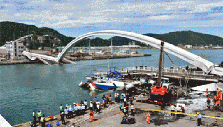 మంగళవారం ఉదయం తైవాన్ లోని ఇలాన్ ప్రాంతంలో 140 మీటర్లు పొడవున్న ఒక బ్రిడ్జి ఉన్నట్టుండి కుప్పకూలిపోయింది.వెంటనే స్పందించిన అధికారులు,రెస్క్యూ టీమ్,అగ్నిమాపక సిబ్బందిని ఏర్పాటు చేశారు. ఆ వంతెన క్రింద ఉన్న పడవల పై కూలిపోయింది.ఈ ప్రమాదంలో 10 మంది వరకు గాయపడ్డారని అధికారులు వెల్లడించారు.గాయపడ్డ వారి సంఖ్య ఇంకా పెరగొచ్చని అధికారులు తెలిపారు.బ్రిడ్జి కూలిపోవడానికి గల కారణాలేమిటనేది తెలియాల్సి ఉంది.
