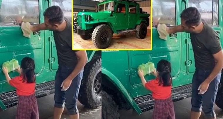 టీమిండియా మాజీ సారథి మహేంద్ర సింగ్ ధోనికి కార్లు, బైక్లు అంటే చాలా ఇష్టమనే సంగతి తెలిసిందే. ఇటీవలే తన కార్ల లిస్టులో ‘నిసాన్ జొంగా’ జీప్ను కూడా చేర్చేశాడు మిస్టర్ కూల్. ఇక కూతురు జీవా కూడా తండ్రి బాటలోనే వెళ్తున్నట్లుగా అనిపిస్తుంది ఈ వీడియో చుస్తుంటే. దీపావళి సందర్భంగా ధోని.. కూతురు జీవాతో కలిసి తన కొత్త జీప్ను శుభ్రం చేస్తున్న వీడియోను ధోని ఇన్స్టాగ్రామ్లో షేర్ చేశారు. ఇందులో ప్యాంట్ను పైకి మడుచుకుని.. చేతిలో వాషింగ్ క్లాత్తో ఉన్న ధోని, జీవాలను చూస్తుంటే వారిద్దరు పనిలో చాలా బిజీగా ఉన్నట్లు కనిపిస్తున్నారు. ప్రస్తుతం ఈ వీడియో సోషల్ మీడియాలో వైరల్గా మారింది. ‘పెద్ద పనికి.. చిన్న సాయం ఎప్పటికీ ప్రత్యేకంగానే ఉంటుంది’ అనే టైటిల్తో షేర్ చేసిన వీడియోకి.. గంటలోనే దాదాపు 7 లక్షల వ్యూస్ రాగా వేలల్లో కామెంట్స్ వచ్చాయి. ‘మేము కూడా మీకు సాయం చేస్తాం ప్లీజ్, నిరాండబరత చాలా ఉత్తమమైంది’ అంటూ నెటిజన్లు కామెంట్ చేస్తున్నారు. అలాగే ఎంఎస్ ధోనీ భార్య సాక్షి కూడా జీవా జొంగా కారుపై కుర్చుని నవ్వుతున్న ఫోటోతో పాటు, కారుపై ఉన్న చిన్ననాటి ఫోటోలను తన ఇన్స్టాగ్రామ్లో షేర్ చేశారు. ‘అవర్ డాడ్స్ రైడ్’ అనే క్యాప్షన్తో షేర్ చేసిన పోస్ట్కి టన్నుల కొద్ది హార్ట్ ఎమోజీలు రాగా ‘జీవా అచ్చం తల్లీ సాక్షీ’ లాగే ఉందంటూ నెటిజన్లు కామెంట్ పెడుతున్నారు. అయితే మిస్టర్ కూల్ ‘నిస్సాన్ జోంగా’పై తన స్వస్థలం రాంచీలో చక్కర్లు కొట్టిన వార్త కొన్ని రోజుల పాటు హల్చల్ చేసిన విషయం తెలిసిందే. ‘నిస్సాన్ జోంగా’ జీప్ను భారత సైన్యం కోసం ప్రత్యేకంగా తయారు చేయించినది కావడంతో ధోని దానిని వాడటం ఆపేసినట్లు తెలుస్తోంది.