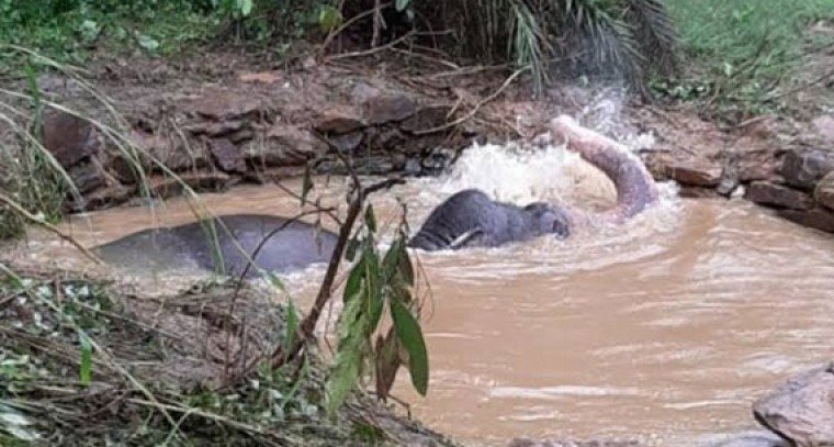 భువనేశ్వర్ లోని సుందర్ఘర్ జిల్లాలోని దుమెత్రా గ్రామానికి సమీపంలోని ఓ నీటి గుంతలో ఆడ ఏనుగు పడిపోయింది. అడవుల్లో నుంచి గ్రామంలోకి వచ్చిన ఏనుగును మళ్లీ అడవిలోకి పంపేందుకు గ్రామస్తులు ప్రయత్నించగా అది నీటి గుంతలో పడిపోయింది. అయితే ఏనుగు నీటి గుంతలోని బురదలో చిక్కుకుపోయింది. ఆ ఏనుగును బయటకు తీసేందుకు గ్రామస్తులు ప్రయత్నించి విఫలమయ్యారు. దీంతో వారు అగ్నిమాపక సిబ్బంది అధికారులకు సమాచారం అందించారు. అక్కడికి చేరుకున్న అగ్నిమాపక సిబ్బంది.. స్థానికుల సహాయంతో ఏనుగుకు తాళ్లు కట్టి నెమ్మదిగా బయటకు తీశారు. ఆ తర్వాత ఏనుగు అరుస్తూ అక్కడ్నుంచి వెళ్లిపోయింది. ప్రస్తుతం ఈ వీడియో నెట్టింట్లో వైరల్ గా మారింది. ఆ వీడియో మీ కోసం...