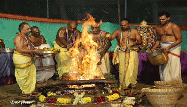 శ్రీనివాసమంగాపురంలోని శ్రీ కల్యాణ వేంకటేశ్వరస్వామివారి ఆలయంలో మూడు రోజుల పాటు జరిగిన పవిత్రోత్సవాలు శనివారం పూర్ణాహుతితో ఘనంగా ముగిశాయి. ఈ సందర్భంగా ఆలయంలో ప్రత్యేక కార్యక్రమాలు నిర్వహించారు. ఉదయం స్వామివారిని సుప్రభాతంతో మేల్కొలిపి, తోమాలసేవ, కొలువు, పంచాంగశ్రవణం, సహస్రనామార్చన నిర్వహించారు. స్వామి, అమ్మవారి ఉత్సవర్లను కల్యాణమండపంలోకి వేంచేపు చేశారు. ఉదయం 10.00 నుండి 11.30 గంటల వరకు శ్రీ భూ సమేత శ్రీ కల్యాణ వేంకటేశ్వరస్వామివారి ఉత్సవమూర్తులకు వేడుకగా స్నపనతిరుమంజనం జరిగింది. ఇందులో భాగంగా పాలు, పెరుగు, తేనె, చందనం, కొబ్బరినీళ్లతో విశేషంగా అభిషేకం చేశారు. తిరుమంజనంలో స్వామి అమ్మవార్లను తులసి, వివిధ సాంప్రదాయ పుష్ప మాలలతో ప్రత్యేకంగా అలంకరించారు. కాగా, సాయంత్రం 6.00 నుండి 7.00 గంటల వరకు స్వామి, అమ్మవార్లు ఆలయ నాలుగు మాడ వీధులలో ఊరేగి భక్తులను అనుగ్రహించారు. ఆ తరువాత యాగశాల వైదిక కార్యక్రమాలు, పూర్ణాహుతి, కుంభప్రోక్షణ, ఆచార్య బహుమానం నిర్వహించనున్నారు. పవిత్రోత్సవాల్లో పాల్గొన్న గృహస్తులకు ఒక పవిత్రమాల, ఒక ఉత్తరీయం, ఒక రవికె, అన్నప్రసాదం బహుమానంగా అందజేశారు.