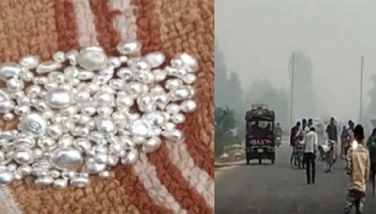 రహదారిపై స్థానికులకు వెండి పూసలు దొరికిన ఘటన బీహార్ లోని సుర్సంద్ లో చోటు చేసుకుంది. వెండి పూసలన్నింటినీ ఏరుకొని స్థానికులు ఇళ్లకు వెళ్లిపోయారు. ఇందుకు సంబంధించిన ఫొటోలు కూడా బయటకు వచ్చాయి. రాత్రి సమయంలో కొందరు అక్రమ రవాణా చేస్తుండగా వెండి పూసలు రహదారిపై పడిపోయినట్లు అధికారులు భావిస్తున్నారు.నేపాల్ నుంచి అక్రమంగా వెండిని తెచ్చి కొందరు స్మగ్లర్లు భారత్ లో విక్రయిస్తున్నారు. వారు పడేసుకున్న వెండిపూసలను ఏరుకోవడంలో చిన్నారులు కూడా ఉత్సాహం కనబర్చారు. గ్లాసుల్లో, జేబుల్లో వాటిని వేసుకొని ఇంటికెళ్లారు.