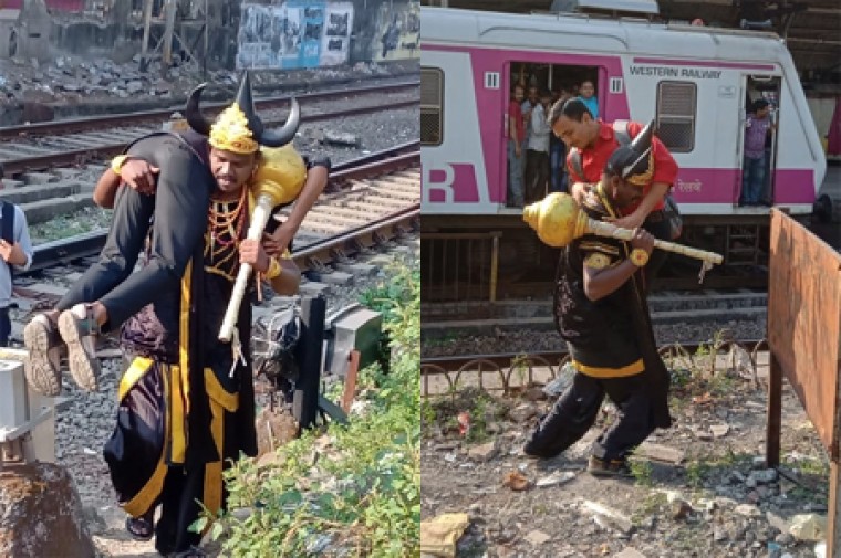 దేశ వ్యాప్తంగా రైల్వే క్రాసింగ్లతో పాటు రైల్వే ట్రాక్ల వద్ద తరుచూ ప్రమాదాలు జరుగుతోన్న నేపథ్యంలో వీటిపై అవగాహన కల్పించడానికి ముంబయి రైల్వే స్టేషన్ లో పశ్చిమ రైల్వే ప్రొటెక్షన్ ఫోర్స్ వినూత్న ప్రయత్నం చేసింది. యముడి వేషధారణలో రైల్వే స్టేషన్లోకి ఓ వ్యక్తి వచ్చాడు. రైల్వే ట్రాక్పై నుంచి వెళ్తున్న వారిని భుజంపై వేసుకొని నరకానికి తీసుకెళ్తున్నట్లు నటించాడు. రైల్వే శాఖ సూచించే నిబంధనలు పాటించకపోతే యమలోకానికెళతారంటూ యమ ధర్మరాజు వేషధారణలోని వ్యక్తి ఇలా హెచ్చరించాడు. ఇందుకు సంబంధించిన ఫొటోలను కొందరు సామాజిక మాధ్యమాల్లో పోస్ట్ చేశారు. రైల్వే ప్రొటెక్షన్ ఫోర్స్ చేసిన వినూత్న ప్రయోగంపై ప్రశంసల జల్లు కురుస్తోంది.