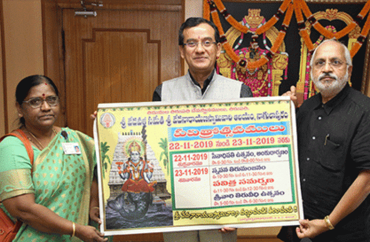 టిటిడికి అనుబంధంగా ఉన్న నాగలాపురంలోని శ్రీ వేదవల్లీ సమేత శ్రీ వేదనారాయణస్వామివారి ఆలయ పవిత్రోత్సవాల గోడపత్రికలను జెఈవో ి.బసంత్కుమార్ శుక్రవారం తిరుపతిలోని శ్రీ పద్మావతి విశ్రాంతి గృహంలో ఆవిష్కరించారు.