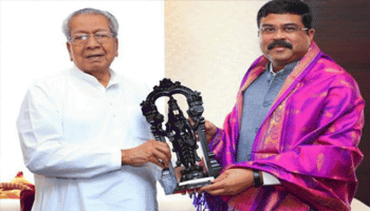 కేంద్ర ఇంధన వనరులు, సహజ వాయివులు, ఉక్కు శాఖ మంత్రి ధర్మేంద్ర ప్రధాన్ శుక్రవారం ఆంధ్రప్రదేశ్ గవర్నర్ గౌరవ బిశ్వ భూషణ్ హరిచందన్ను మర్యాదపూర్వకంగా కలిసారు. ఉదయం రాజ్భవన్ చేరుకున్న ఆయన గవర్నర్ శ్రీ బిశ్వ భూషణ్ హరిచందన్తో భేటీ అయ్యారు. రాజ్ భవన్లోనే అల్పాహార విందును స్వీకరించిన కేంద్రమంత్రి అనంతరం గవర్నర్తో పలు అంశాలను చర్చించారు. ఈ నేపధ్యంలో గవర్నర్ మాట్లాడుతూ విభజన ఫలితంగా ఆంధ్రప్రదేశ్ పలు విధాలుగా నష్టపోయిందని, రాష్ట్రం అభివృద్ధికి అవసరమైన సహకారాన్ని అందించాలని మంత్రిని కోరారు. రాష్ట్రానికి రావలసిన నిధులు, ప్రాజెక్టులపై ప్రత్యేక శ్రద్ధ తీసుకోవాలని బిస్వ భూషణ్ కేంద్ర మంత్రిని కోరారు. ధర్మేంద్ర ప్రధాన్ మాట్లాడుతూ ఓఎన్జిసి కెజి బేసిన్ను సందర్శించాలని గవర్నర్ను ఆహ్వానించారు. ఉక్కు శాఖను కూడా నిర్వహిస్తున్న కేంద్ర మంత్రి విశాఖ ఉక్కు కర్మాగారానికి కూడా రావాలని హరిచందన్ను కోరారు.