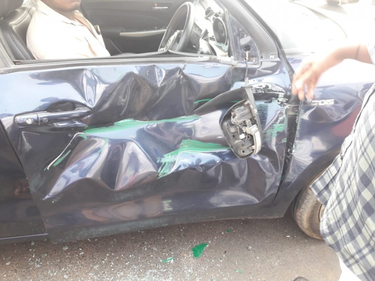 నెల్లూరు జిల్లా నాయుడుపేట నేషనల్ హైవే రోడ్ మల్లం జంక్షన్ వద్ద నెల్లూరు నుండి తిరుపతికి వెళుతున్న కారుని నాయుడుపేట నుంచి తమిళనాడు కు వెళ్లే బస్సు ఢీకొంది. కారు కుడివైపు డోర్ భాగం దెబ్బతింది. సమాచారం అందుకున్న హైవే మొబైల్ పెట్రోలింగ్ పోలీసులు అక్కడకు చేరుకొని విచారణ ప్రారంభించారు