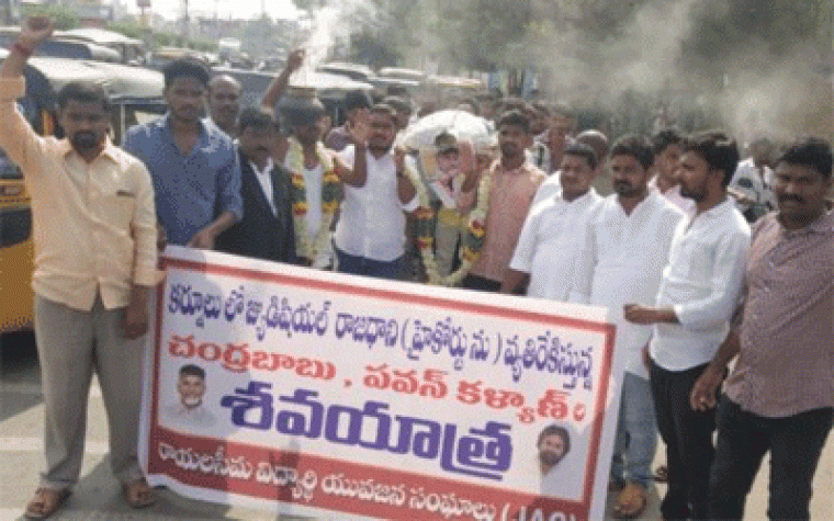 అమరావతి స్థానంలో మూడు ప్రాంతాలకు మూడు రాజధానులు ఏర్పాటుచేయాలన్న ముఖ్యమంత్రి జగన్మోహన్ రెడ్డి ప్రతిపాదనకు రాయలసీమ విద్యార్థులు మద్దతు ప్రకటించారు. మూడు రాజధానుల ప్రతిపాదనను తెలుగు దేశం పార్టీ అధ్యక్షుడు చంద్రబాబు నాయుడు, జనసేన నేత పవన్ కల్యాణ్ వ్యతిరేకించడం సరికాదని తీవ్ర నిరసన తెలిపారు. కర్నూలు నగరంలో ఈ మేరకు వారి శవయాత్ర జరిపి, దగ్దం చేసారు.