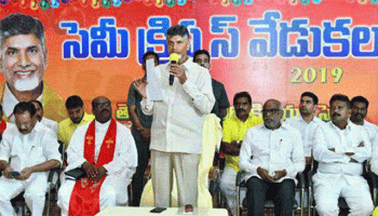 శాంతి సందేశం ఇవ్వడమే క్రిస్మస్ పండుగ ఉద్దేశమని టీడీపీ అధినేత, మాజీ ముఖ్యమంత్రి నారా చంద్రబాబు నాయుడు అన్నారు. మంగళగిరినిలోని టీడీపీ రాష్ట్ర కార్యాలయంలో నిర్వహించిన సెమీ క్రిస్మస్ వేడుకల్లో చంద్రబాబు పాల్గొని మాట్లాడారు. సమస్యలు లేని ఆనందకర జీవితం ఇవ్వడమే ఏసుక్రీస్తు బోధనల సారాంశమని చెప్పారు. మనిషిగా పుట్టి మనలాగే సమస్యలను ఎదుర్కొని ప్రేమ సందేశాన్ని ఇచ్చారన్నారు. ఏసు మార్గంలో క్రిస్టియన్ మిషనరీలు సేవాభావంతో తరిస్తున్నాయని కొనియాడారు. క్రిస్మస్తో పాటు రంజాన్, సంక్రాంతి పండుగలకు కానుకలిచ్చిన విషయాన్ని చంద్రబాబు ఈ సందర్భంగా గుర్తుచేశారు. తమ ప్రభుత్వ హయాంలో క్రిస్మస్ వేడుకలు ఘనంగా నిర్వహించామని చెప్పారు. ఉమ్మడి రాష్ట్రంలో సీఎంగా ఉన్నప్పుడే ఈ వేడుకలకు నాంది పలికామని చంద్రబాబు అన్నారు.