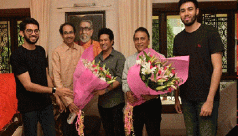 భారత దిగ్గజ క్రికెటర్లు సచిన్ టెండూల్కర్, సునీల్ గవాస్కర్ మహారాష్ట్ర ముఖ్యమంత్రి ఉద్ధవ్ ఠాక్రేని కలిశారు. నవంబరు 28న సీఎంగా ఉద్ధవ్ ఠాక్రే బాధ్యతలు చేపట్టగా.. ఈరోజు ముంబయిలోని అతని నివాసం ‘మాతోశ్రీ’ వెళ్లిన ఈ మాజీ క్రికెటర్లు మర్యాదపూర్వకంగా కలిసి అభినందనలు తెలియజేశారు. భారత్, వెస్టిండీస్ మధ్య ఇటీవల ముగిసిన సిరీస్కి మ్యాచ్ కామెంటేటర్గా సునీల్ గవాస్కర్ వ్యవహరించిన విషయం తెలిసిందే. మహారాష్ట్రలో ఎన్నికల ఫలితాలు వెలువడిన తర్వాత.. రాజకీయాల్లో గజిబిజి వాతావరణం నెలకొనగా.. వాటన్నింటినీ అధిగమించి ఎట్టకేలకి శివసేన అధినేత ఉద్ధవ్ ఠాక్రే ముఖ్యమంత్రి పీఠాన్ని అధిరోహించాడు. బీజేపీ ఎత్తుల్ని చిత్తుచేస్తూ శివసేన-ఎన్సీపీ.. కాంగ్రెస్ పర్యవేక్షణలో మహారాష్ట్ర వికాస్ ఆఘాడీ (ఎంవీఏ) ఏర్పడిన విషయం తెలిసిందే. దీంతో.. 2003 నుంచి సీఎం పదవి కోసం నిరీక్షిస్తున్న59 ఏళ్ల ఉద్ధవ్ ఠాక్రే తన కలని నెరవేర్చుకున్నాడు. ఉద్ధవ్ ఠాక్రేని సచిన్ టెండూల్కర్, సునీల్ గవాస్కర్ కలిసిన సమయంలో అతనితో పాటు కుమారులు ఆదిత్య ఠాక్రే, అమిత్లు కూడా అక్కడే ఉన్నారు.