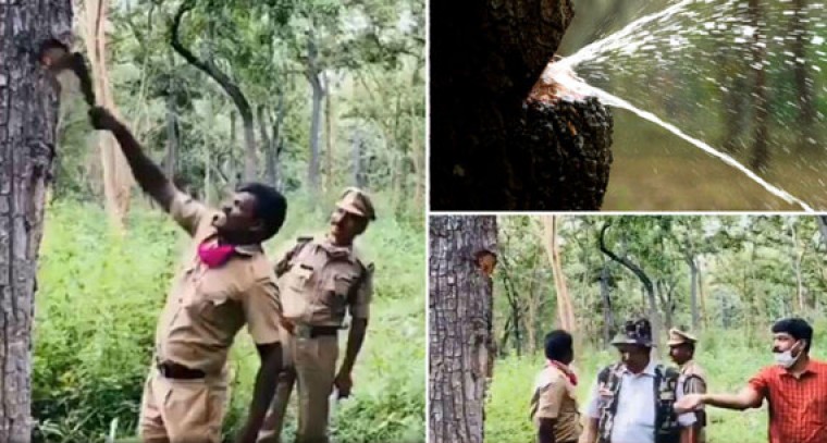 తమిళనాడులో ఓ చెట్టును కట్ చేస్తుంటే నీళ్లు వస్తున్నాయి. ఐఎఫ్ఎస్ అధికారి దిగ్విజయ్ సింగ్ ఖాటీ ఈ వీడియోను సోషల్ మీడియాలో పోస్టు చేయడంతో వైరల్గా మారింది. ఈ వీడియోలో ఓ చెట్టును గొడ్డలితో నరకగానే నీళ్లు బయటకు వస్తున్నాయి. ఈ చెట్లను టెర్మినాలియా టోమెంటోసా అంటారని, ఇవి కాండాల్లో నీటిని నిల్వ ఉంచుకుంటాయని అధికారులు తెలిపారు. ఈ చెట్లను అశాన్, అశ్నా, సజ్ అని కూడా పిలుస్తారు. చెట్టు నుంచి నీళ్లు దారాళంగా వస్తున్న వీడియో సోషల్ మీడియాలో వైరల్ అయ్యి చక్కర్లు కొడుతోంది.