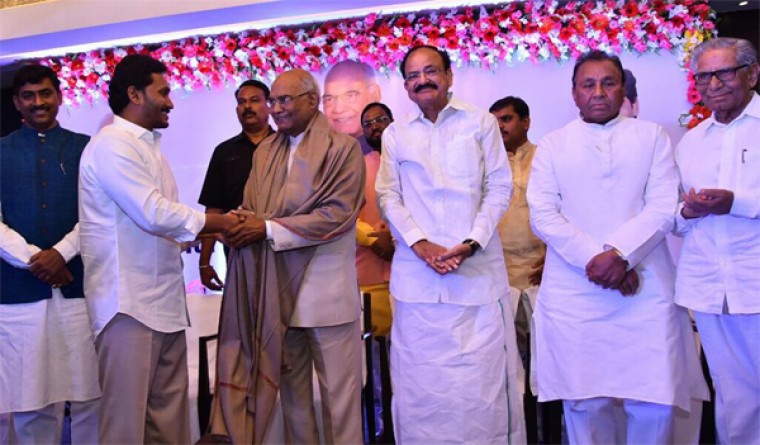 వైఎస్ జగన్ ఈ సందర్భంగా రామ్నాథ్ కోవింద్కు శాలువా కప్పి సత్కరించారు. అనంతరం పార్టీ ఎంపీలు, ఎమ్మెల్యేలు, నేతలను