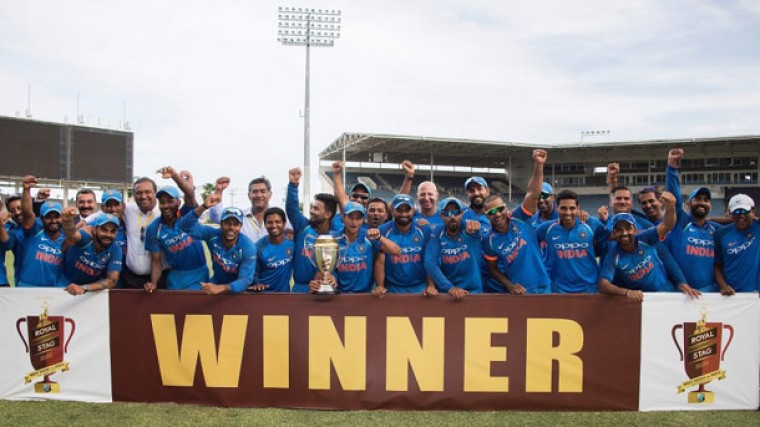 అంతకుముందు పేస్ బౌలర్లు షమి (4), ఉమేష్ యాదవ్ (3) ధాటికి విండీస్ 50 ఓవర్లలో 9 వికెట్లకు 205 రన్స్ మాత్రమే చేయగలిగింది. షాయ్ హోప్ (51), కైల్ హోప్ (46) మాత్రమే రాణించారు. స్పిన్నర్లు జడేజా, కుల్దీప్ యాదవ్ వికెట్లు తీయకపోయినా.. కట్టుదిట్టమైన బౌలింగ్తో పరుగులు ఇవ్వకుండా విండీస్ బ్యాట్స్మెన్పై ఒత్తిడి పెంచారు. పేసర్లు వికెట్లు తీసి విండీస్ను తక్కువ స్కోరుకే కట్టడి చేశారు. ఐదు వన్డేల సిరీస్లో తొలి వన్డే రద్దవగా.. రెండు, మూడు, ఐదో వన్డేల్లో గెలిచిన భారత్ 3-1తో సిరీస్ గెలిచింది. ఆదివారం విండీస్తో ఏకైక టీ20లో తలపడనున్నది విరాట్ సేన.