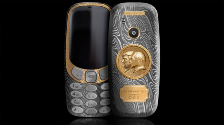 తాజాగా జర్మనీలోని హ్యాంబర్గ్ లో జరుగుతున్న జీ-20 సదస్సు సందర్భంగా నోకియా విడుదల చేసిన ఫోన్ అందరినీ ఆకట్టుకుంటోంది. రష్యా అధ్యక్షుడు పుతిన్ - అమెరికా అధ్యక్షుడు ట్రంప్ చిత్రాలతో నోకియా 3310 ఫోన్ ఒకటి రిలీజ్ చేసింది. దీనిపై బంగారు పూతతో వారి చిత్రాలు ఉన్నాయి. ఫోన్ బ్యాక్ కవర్ పై టైటానియం ప్లేట్ ను ఏర్పాటు చేసి అక్కడ ఈ బొమ్మలను ముద్రించి దానిపై బంగారం పూత పూశారు. దీని ధరను 2468 డాలర్లుగా నిర్ణయించారు. అంటే భారత కరెన్సీ ప్రకారం ఈ ఫోన్ విలువ సుమారు 1.6 లక్షల రూపాయలు వరకు ఉంటుంది.