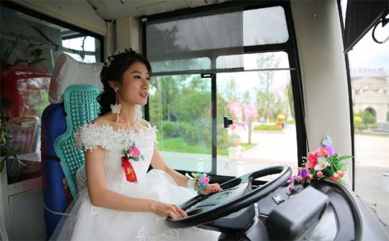 ఈస్ట్ చైనా లోని షాన్ డాంగ్ ప్రావిన్స్ కు చెందిన వు జెంగ్ అనే అమ్మాయి వృత్తిరీత్యా బస్సు డ్రైవర్. ఇక.. తనకు పెళ్లి కుదిరింది. పెళ్లి మండపానికి రావడానికి చాలా మంది పెళ్లి కొడుకులను సూపర్ గా డెకరేట్ చేసిన కార్లల్లో తీసుకెళ్తారన్న విషయం తెలిసిందే కదా. కాని.. ఇక్కడ విచిత్రమేమిటంటే.. పెళ్లి కూతురే.. పెళ్లి కొడుకు ను పెళ్లి మండపానికి తను రోజు నడిపే బస్సు లో తనే బస్సు నడిపి తీసుకెళ్తుంది. అయితే.. ఇక్కడ గమనించాల్సిన విషయం ఇంకోటి ఉంది. ఎంతో డబ్బులు వెచ్చించి ఎంతో డంభమైన పెళ్లిళ్లు చేసుకుంటున్న నేటి తరుణంలో సింపుల్ గా ఓ బస్సులో పెళ్లి కొడుకును తీసుకువచ్చి హంగు ఆర్భాటాలు లేకుండా పెళ్లి చేసుకున్న ఈ బస్సు డ్రైవర్ ను నెటిజన్లు తెగ మెచ్చుకుంటున్నారు.