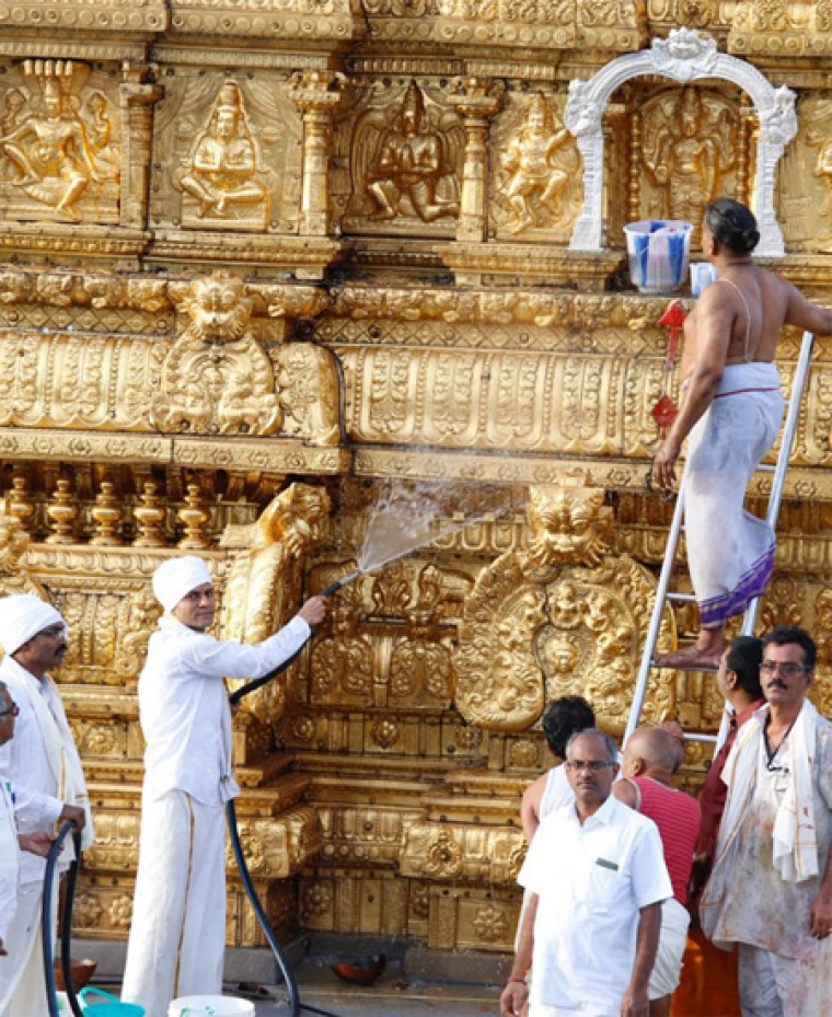 తిరుమల శ్రీ వేంకటేశ్వరస్వామి ఆలయంలోఈ నెల 16 న జరగబోయే ఆణివార ఆస్థానాన్ని పురస్కరించుకుని ఈ రోజు నిర్వహించిన కోయిల్ ఆళ్వార్ తిరుమంజనం అత్యంత వైభవంగా జరిగింది.. సాధారణంగా సంవత్సరంలో నాలుగు సార్లు ఈ కోయిల్ ఆళ్వార్ తిరుమంజనాన్ని నిర్వహించడం ఆనవాయితీ. ఉగాది, ఆణివార ఆస్థానం, బ్రహ్మోత్సవం, వైకుంఠ ఏకాదశి పర్వదినాల ముందు వచ్చే మంగళవారం నాడు ఆలయ శుద్ధి కార్యక్రమాన్ని నిర్వహిస్తారు.. ఈ రోజు ఉదయం 6.00 గంటల నుండి ఉ.11.00 గంటల వరకు ఈ ఆలయ శుద్ధి కార్యక్రమాన్ని అర్చకులు ఆగమోక్తంగా నిర్వహించారు. ఈ తిరుమంజన ఉత్సవాన్ని పురస్కరించుకొని అష్టదళ పాదపద్మారాధన సేవను రద్దు చేసింది. ముందుగా స్వామివారి మూలవిరాట్టును వస్త్రంతో పూర్తిగా కప్పి వేసి ఆలయంలోని ఆనందనిలయం మొదలుకొని బంగారువాకిలి వరకు, శ్రీవారి ఆలయం లోపల ఉప ఆలయాలు, ఆలయ ప్రాంగణం, గోడలు, పైకప్పు, పూజాసామాగ్రి తదితర అన్ని వస్తువులను నీటితో శుభ్రం చేశారు. శుద్ధి పూర్తి అయిన అనంతరం నామకోపు, శ్రీ చూర్ణం, కస్తూరి పసుపు, పచ్చాకు, గడ్డ కర్పూరం, గంధం పొడి, కుంకుమ, కిచీలీగడ్డ తదితర సుగంధ ద్రవ్యాలు కలగలిపిన పవిత్ర జలాన్ని ఆలయం అంతటా ప్రోక్షణం చేశారు.