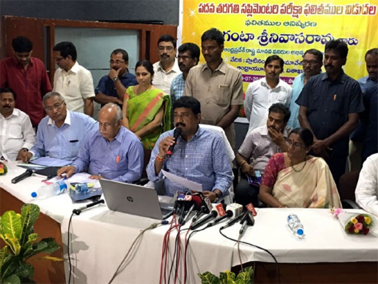 ఏయూ ప్రాంగణం: ఆంధ్రప్రదేశ్లో పదో తరగతి అడ్వాన్స్డ్ సప్లిమెంటరీ ఫలితాలు విడుదలయ్యాయి. ఆంధ్రా యూనివర్సిటీలోని ప్లాటినం జూబ్లీహాలులో ఈ ఫలితాలను రాష్ట్ర మానవవనరుల అభివృద్ధి శాఖ మంత్రి గంటా శ్రీనివాసరావు విడుదల చేశారు. విద్యాశాఖ అధికారులతో కలిసి ఆయన పరీక్ష ఫలితాల సీడీని ఆవిష్కరించారు. ఈ ఫలితాల్లో 71.37 శాతం ఉత్తీర్ణత నమోదైనట్టు మంత్రి గంటా తెలిపారు. జూన్ నెలలో నిర్వహించిన ఈ అడ్వాన్స్డ్ సప్లిమెంటరీ పరీక్షలకు 46,605 మంది విద్యార్థులు హాజరయ్యారని తెలిపారు. అయితే వారిలో 33,261 మంది ఉత్తీర్ణత సాధించారని అన్నారు. ఈ ఫలితాల్లో 94.38 శాతం ఉత్తీర్ణతతో నెల్లూరు జిల్లా ప్రథమ స్థానంలో నిలవగా.. 60.17 శాతంతో కృష్ణా జిల్లా ఆఖరు స్థానంలో నిలిచిందని మంత్రి వెల్లడించారు. ఈ కార్యక్రమంలో పరీక్షల విభాగం డైరెక్టర్ వీఎస్ భార్గవ, డీఈవో నాగమణి, ఏయూ రిజిస్ట్రార్ ఉమామహేశ్వరరావు తదితరులు పాల్గొన్నారు.
