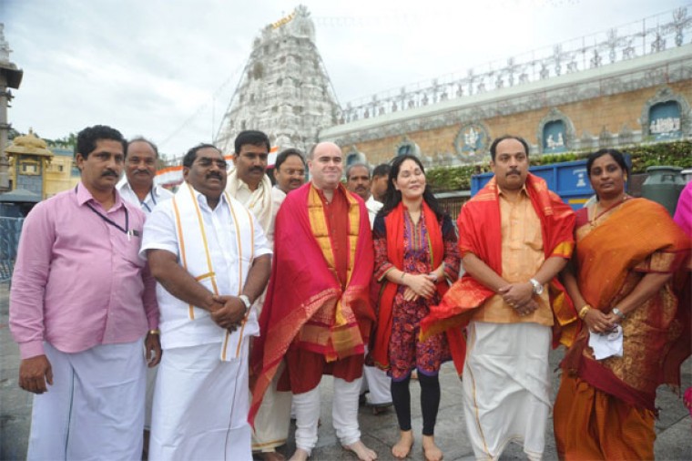 తిరుమల : తిరుమల శ్రీవారిని బ్రిటీష్ డిప్యూటీ హై కమీషనర్ ఆండ్రూ మెకారిష్టర్ దర్శించుకున్నారు. ఉదయం విఐపీ విరామ సమయంలో కుటుంబసభ్యులతో పాటు స్వామి వారి ఆశీస్సులు పొందారాయన. ఆలయ అధికారులు దగ్గరుండి దర్శనం చేయించారు. అనంతరం స్వామి వారి తీర్దప్రసాదాలను,పట్టు వస్త్రాలను అందించారు అర్చకులు. స్వామి వారిని దర్శించుకోవడం ఆనందంగా ఉందన్నారు మెకారిష్టర్.