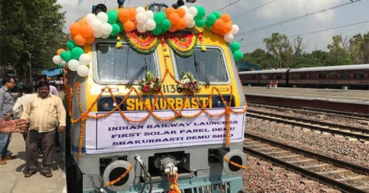 తొలిసారిగా సౌరశక్తితో నడిచే లోకల్ రైలును రైల్వేశాఖ ప్రారంభించింది. సౌరశక్తిని విద్యుత్శక్తిగా నిల్వచేసుకునే బ్యాటరీ బ్యాంక్తో ఈ డెమూ (డీజిల్ ఎలక్ట్రిక్ మల్టిపుల్ యూనిట్) ట్రెయిన్ రాత్రీ పగలూ నడువనుంది. కోచ్లపై ఏర్పాటు చేసిన సోలార్ ప్యానెల్స్ ఆధారంగా లైట్లు, ఫ్యాన్లు, ఎలక్ట్రానిక్ డిస్ప్లే బోర్డులు పనిచేయనున్నాయి. రైల్వేశాఖ మంత్రి సురేశ్ ప్రభు జెండా ఊపి రైలును ప్రారంభించారు. సోలార్ ఆధారిత కోచ్లను ఏర్పాటు చేయడంతో 1500 హార్స్పవర్ సామర్థ్యంతో ఈ రైలు పరుగులు తీయనుంది. ఈ రైలు ద్వారా ఏటా రూ.12లక్షల విలువైన 21వేల లీటర్ల డీజిల్ ఆదా కానుంది. ఈ ప్రయోగం విజయవంతమైతే ఇలాంటి మరిన్ని రైళ్లను తీసుకురావాలని రైల్వేశాఖ భావిస్తున్నది.