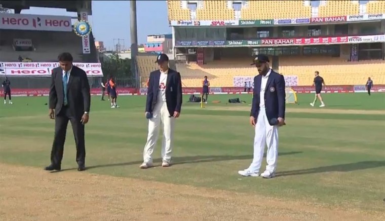 భారత్తో జరగనున్న తొలి టెస్టులో టాస్ గెలిచిన ఇంగ్లండ్ తొలుత బ్యాటింగ్ ఎంచుకున్నది. చెన్నైలోని చిదంబరం స్టేడియంలో మరికాసేపట్లో ఇంగ్లండ్, ఇండియా మధ్య తొలి టెస్టు ప్రారంభంకానున్నది. భారత జట్టులోకి నదీమ్, వాషింగ్టన్ సుందర్లు వచ్చారు. ఆస్ట్రేలియా టూర్లో జరిగిన చివరి మూడు టెస్టులకు కెప్టెన్సీ నుంచి దూరమైన విరాట్ కోహ్లీ.. మళ్లీ సారథ్య బాధ్యతలు చేపట్టారు. జో రూట్ నేతృత్వంలో ఇంగ్లండ్ బరిలోకి దిగుతున్నది. ముందుగా టాస్ గెలిస్తే, తాను కూడా బ్యాటింగ్ ఎంచుకునే వాడినన విరాట్ చెప్పాడు. వికెట్ బాగుందన్నాడు.