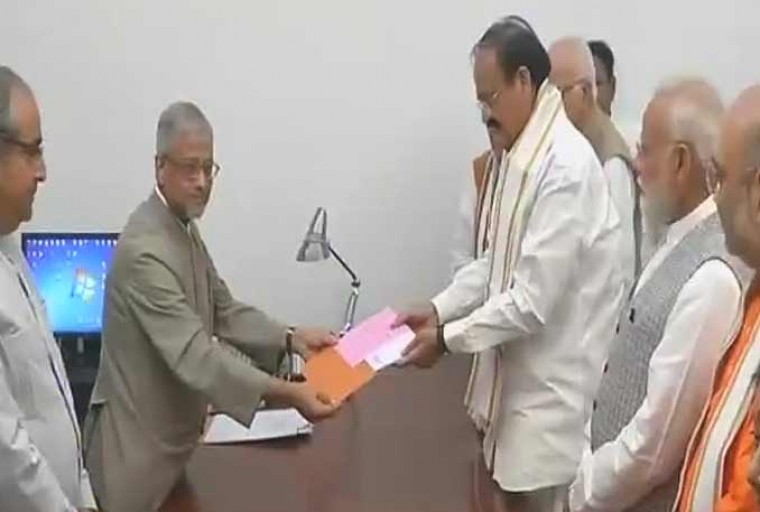 ఎన్డీయే ఉపరాష్ట్రపతి అభ్యర్థిగా ఎం.వెంకయ్యనాయుడు ఈరోజు నామినేషన్ దాఖలు చేశారు. రెండు సెట్ల నామినేషన్ రిటర్నింగ్ అధికారికి సమర్పించారు. తొలి సెట్పై ప్రధానమంత్రి మోదీ సంతకం చేయగా.. రెండో సెట్పై రాజ్నాథ్ సింగ్ సంతకం చేశారు. భాజపా, తెదేపా, తెరాసకు చెందిన పలువురు ఎంపీలు నామినేషన్ పత్రాలపై సంతకాలు చేశారు. ఈ కార్యక్రమంలో ప్రధాని మోదీ, అమిత్ షా, అడ్వాణీ, మురళీ మనోహర్ జోషి, సుష్మాస్వరాజ్, అరుణ్ జైట్లీ, నితిన్ గడ్కరీ సహా పలువురు ఎంపీలు, భాజపా ముఖ్యనేతలు పాల్గొన్నారు. ఆగస్టు 5న జరిగే ఉప రాష్ట్రపతి ఎన్నికలో వెంకయ్యనాయుడు.. యూపీఏ అభ్యర్థి గోపాలకృష్ణ గాంధీతో తలపడనున్నారు. సోమవారం జరిగిన భాజపా పార్లమెంటరీ బోర్డు సమావేశంలో ఉపరాష్ట్రపతి అభ్యర్థిగా వెంకయ్యను ఏకగ్రీవంగా ఎన్నుకున్న సంగతి తెలిసిందే.