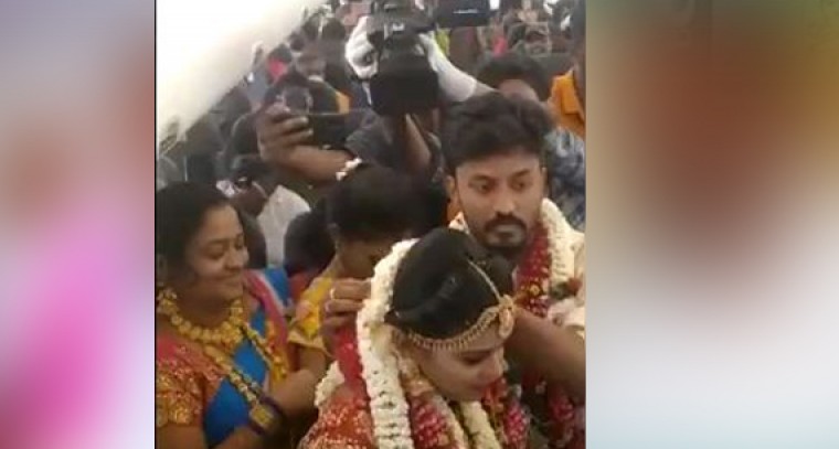 తమిళనాడు మదురైకి చెందిన ఇద్దరు వ్యాపారవేత్తలు.. తమ పిల్లల పెళ్లిని అంగరంగ వైభవంగా చేద్దామనుకున్నారు. కానీ కరోనా వల్ల ఆ అవకాశం కుదరలేదు. దీంతో వారు అదిరిపోయే ఐడియా వేశారు. ఓ విమానాన్ని బుక్ చేసుకున్నారు. 161 మందితో విమానం మదురై నుంచి తూత్తుకుడికి బయలుదేరింది. వధూవరులు రాకేష్, దక్షిణ జంట, కుటుంబసభ్యులు, బంధువులు మాత్రమే విమానం ఎక్కారు. వీరందరికీ కరోనా పరీక్షలు చేయించి నెగిటివ్గా తేలిన తర్వాతే ప్రయాణానికి అనుమతించారు. అనుకున్న ముహూర్తానికి వధువు మెడలో వరుడు తాళి కట్టాడు. విమానం తూత్తుకుడికి వెళ్లి మళ్లీ తిరిగి మదురైకి చేరుకుంది. అలా గాల్లోనే ఇరుకుటుంబాల మధ్య ఈ జంట ఒక్కటైంది. ప్రస్తుతం దీనికి సంబంధించిన వీడియో సోషల్ మీడియాలో వైరల్గా మారింది. అయితే సదరు జంట పెళ్లిని గాల్లో అయితే చేసుకున్నారు.. మరి శోభనం ఎక్కడ చేసుకుంటారో అంటూ సోషల్ మీడియాలో నెటిజన్లు ఛలోక్తులు విసురుతున్నారు.