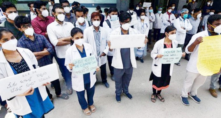రాష్ట్రంలో జూనియర్, రెసిడెంట్ డాక్టర్లు సమ్మె సరైన్ మోగించారు. తమకు కోవిడ్ ప్రోత్సాహకాలు ఇవ్వడంతో పాటు ఆస్పత్రుల్లో భద్రతా ఏర్పాట్లు పెంచాలని, ఆరోగ్య బీమా సౌకర్యం కల్పించాలని డిమాండ్ చేస్తున్నారు. ఈ మేరకు రాష్ట్ర ప్రభుత్వానికి జూడాలు సమ్మె నోటీసు ఇచ్చారు. స్టైఫండ్లో టిడిఎస్ కోత విధించవద్దని కోరుతూ ఈ నెల 9న కోవిడ్తో సంబంధం లేని విధులను బహిష్కరించనున్నారు. 10న కోవిడ్కు సంబంధించిన విధులను కూడా బహిష్కరిస్తారు. 12న అత్యవసర విధులకు దూరంగా ఉండాలని నిర్ణయించారు. ఇందులో భాగంగా ఎపి జూనియర్ డాక్టర్స్ అసోసియేషన్ ఆధ్వర్యంలో సోమవారం విజయవాడ జిజిహెచ్ వద్ద నల్లబ్యాడ్జీలతో నిరసన కార్యక్రమాన్ని నిర్వహించారు.