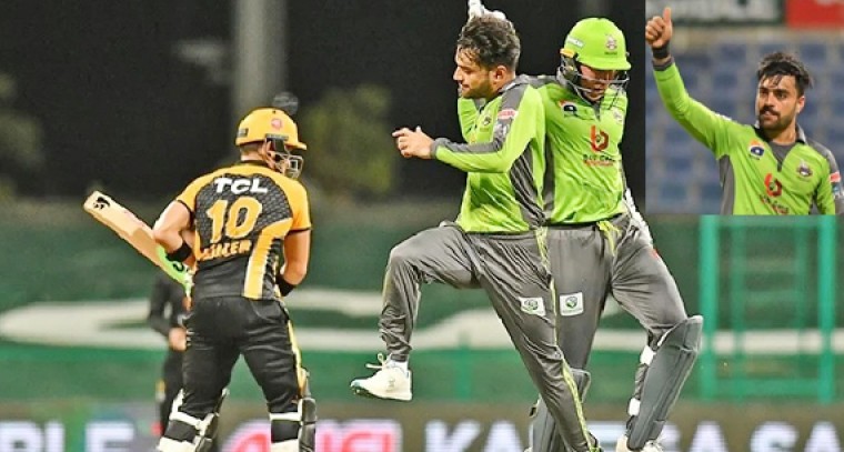 పాకిస్థాన్ సూపర్ లీగ్లో భాగంగా జరిగిన మ్యాచ్లో రషీద్ ఖాన్ అయిదు వికెట్లు తీసుకున్నాడు. లాహోర్ క్వలాండర్స్ తరపున ఆడుతున్న అతను.. పెషావర్ జల్మీ బ్యాట్స్మెన్ను కుప్పకూల్చాడు. గురువారం అబుదాబిలోని షేక్ జయిద్ క్రికెట్ స్టేడియంలో జరిగిన పీఎస్ఎల్ మ్యాచ్లో లాహోర్ జట్టు పది పరుగుల తేడాతో పెషావర్ జల్మీపై విజయం సాధించింది. కీలకమైన రెండు పాయింట్లు సాధించిన ఆ జట్టు పాయింట్ల పట్టికలో పది పాయింట్లతో టాప్ ప్లేస్లో నిలిచింది. తొలుత బ్యాటింగ్ చేసిన లాహోర్ క్వలాండర్స్ నిర్ణీత ఓవర్లలో 170 రన్స్ చేసింది. ఆ జట్టులో టిమ్ డేవిడ్ 64, బెన్ డంక్ 46 రన్స్ చేశారు. ఆ తర్వాత 171 రన్స్ లక్ష్యంతో బరిలోకి దిగిన పెషావర్కు ఆరంభం నుంచే సమస్యలు ఎదురయ్యాయి. మేటి బౌలర్ రషీద్ ఖాన్ ఆ జట్టును చావు దెబ్బతీశాడు. కీలకమైన దశలో వికెట్లను తీసి పెషావర్ను అడ్డుకున్నాడు. రషీద్ ఖాన్ 20 పరుగులు ఇచ్చి కీలకమైన 5 వికెట్లు తీసుకున్నాడు.