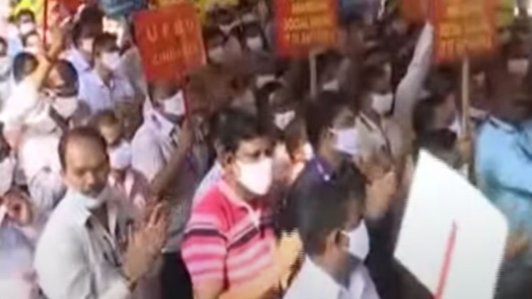 ప్రభుత్వ రంగ బ్యాంకుల ప్రైవేటీకరణను నిరసిస్తూ... దేశవ్యాప్తంగా ఉద్యోగులు తలపెట్టిన సమ్మె రాష్ట్రంలోనూ కొనసాగుతోంది. ఇవాళ, రేపు రెండు రోజులపాటు ఉద్యోగులు సమ్మె చేస్తున్నారు. అందులో భాగంగా రాష్ట్రమంతా ప్రభుత్వ రంగ బ్యాంకుల్లో సేవలు నిలిచిపోయాయి. గ్రామీణ బ్యాంకు ఉద్యోగులూ నిరసనలో పాల్గొంటున్నారు. యునైటెడ్ ఫోరమ్ ఆఫ్ బ్యాంక్ యూనియన్స్ ఆధ్వర్యంలో కోఠి లోని సెంట్రల్ బ్యాంక్ ఆఫ్ ఇండియా ఆవరణలో మహా ధర్నా నిర్వహించారు. హనుమకొండలో యూనియన్ బ్యాంక్ ఆఫ్ ఇండియా వద్ద ఉద్యోగులు నిరసనకు దిగారు. మహబూబాబాద్ లో పట్టణ వీధుల్లో ఉద్యోగులు ర్యాలీ చేపట్టారు.