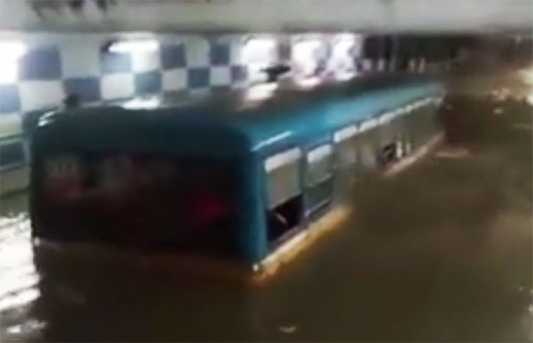 పశ్చిమ్ బంగలో వర్షాలకు ఓ బస్సు నీట మునిగింది. పటిపుకూర్ రైల్వే వంతెన వద్ద భారీగా వర్షపు నీరు చేరడంతో ఆ దిశగా వెళ్తొన్న బస్సు వరద నీటిలో చిక్కుకుపోయిన ఘటనకు సంబంధించిన వీడియో బయటకువచ్చింది. నీటి మట్టం పెరుగుతుండటంతో బస్సులో ఉన్న సుమారు 50 మంది ప్రయాణికులు తీవ్ర ఆందోళనకు గురయ్యారు. ఎటూ వెళ్లలేని పరిస్థితి నెలకొనడంతో వారు ఆ బస్సులోనే బిక్కుబిక్కుమంటూ గడిపారు. చివరకు స్థానికుల సాయంతో కొందరు సురక్షితంగా బయట పడగా.. మరికొందరికి స్వల్ప గాయాలయ్యాయి. క్షతగాత్రులను చికిత్స నిమిత్తం ఆస్పత్రిలో చేర్పించారు. ఈ బస్సులోకి వరదనీరు చేరడంతో ప్రయాణికుల వద్ద ఉన్న మొబైల్ ఫోన్లు, ల్యాప్టాప్లు దెబ్బతిన్నాయి. స్థానికులు లేక్టౌన్, ఆల్టోడంగ పోలీసులను అప్రమత్తం చేయడంతో జెస్సోర్ రోడ్డును మూసివేశారు.