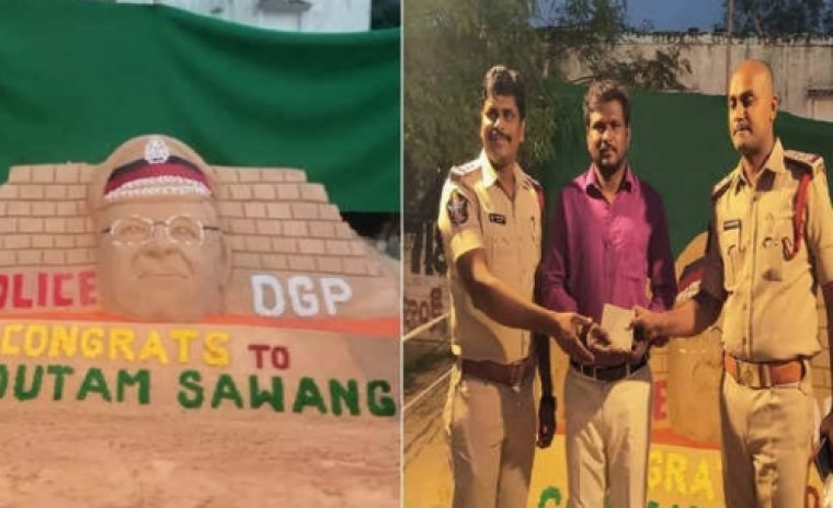 ఆంధ్రప్రదేశ్ రాష్ట్ర డీజీపీ గౌతం సవాంగ్ దేశంలోనే ఉత్తమ డీజీపీగా గుర్తింపు పొందడంతో.. ఆయన అభిమాని నెల్లూరు జిల్లాకు చెందిన యువకుడు డీజీపీ సైకత శిల్పం రూపొందించాడు. కరోనా సమయంలో ఎదురైన సవాళ్లను అధిగమించి రాష్ట్రానికి పోలీసులు ఎంతో కృషి చేసినందుకు గుర్తుగా సైకత శిల్పం రూపొందించినట్లు యువకుడు తెలిపాడు. దీంతో ఆ యువకుడిని నెల్లూరు జిల్లా పోలీసులు అభినందించారు. కరోనా సమయంలో ఎదురైన కఠిన సవాళ్లను అధిగమించి ఏపీ ప్రజలకు డీజీపీ విశేష సేవలు అందించారంటూ ద బెటర్ ఇండియా సంస్థ తెలిపింది. అదే విధంగా దిశ యాప్ ద్వారా మహిళలకు సత్వర రక్షణ కల్పించారని.. టెక్నాలజీ సహాయంతో కేసులను వేగంగా దర్యాప్తు చేశారని.. ఈ సేవలన్నీ గుర్తిస్తూ దేశంలోనే బెస్ట్ డీజీపీగా గుర్తించినట్లు సంస్థ ప్రకటించింది. ఆంధ్రప్రదేశ్ డీజీపీ గౌతం సవాంగ్కి బెటర్ ఇండియా సంస్థ దేశంలోనే ఉత్తమ డీజీపీ అవార్డు అందించింది. మన రాష్ట్ర డీజీపీ ఉత్తమ అవార్డుతో సత్కారం పొందడంతో.. చిల్లకూరు మండలం ఏలూరు గ్రామానికి చెందిన సనత్ కుమార్ అనే యువకుడు సైకత శిల్పం ఏర్పాటు చేశాడు. దీంతో నెల్లూరు ఎస్పీ విజయరావు సనత్ కుమార్ను ప్రత్యేకంగా అభినందించారు. చిల్లకూరు ఎస్సైలు సుధాకర్ రెడ్డి, అజయ్ కుమార్ సనత్ కుమార్ రూపొందించిన సైకత శిల్పాన్ని ప్రారంభించి.. రూ.5 వేలు నగదు బహుమతి
