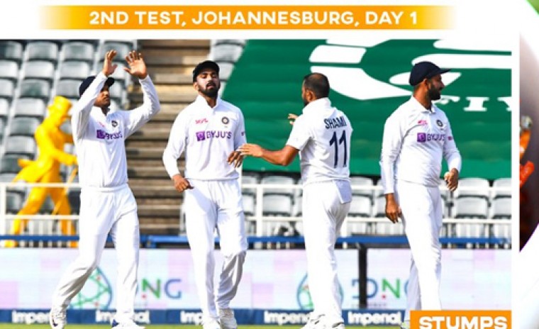 భారత్-దక్షిణాఫ్రికా జట్ల మధ్య మూడు టెస్టు మ్యాచ్ల సిరీస్లో భాగంగా జోహన్నెస్బర్గ్లోని వాండరర్స్ స్టేడియం వేదికగా రెండో టెస్టు మ్యాచ్ జరుగుతోంది. తొలి రోజు ఆట ముగిసే సమయానికి దక్షిణాఫ్రికా 1 వికెట్ నష్టానికి 35 పరుగులు చేసి భారత్ స్కోరు కంటే 167 పరుగులు వెనుకబడి ఉంది. డీన్ ఎల్గర్ 11 పరుగులతో, కీగన్ పీటర్సన్ 14 పరుగులతో నాటౌట్గా ఉన్నారు. మహ్మద్ షమీ భారత్ నుంచి అద్భుత విజయాన్ని అందుకున్నాడు. అంతకుముందు భారత్ 202 పరుగులు చేసింది. విజిటింగ్ జట్టులో కెప్టెన్ కేఎల్ రాహుల్ 50, రవిచంద్రన్ అశ్విన్ 46, మయాంక్ అగర్వాల్ 26, హనుమ విహారి 20 పరుగులు చేశారు. దక్షిణాఫ్రికా తరఫున మార్కో జాన్సన్ నాలుగు వికెట్లు, డువాన్ ఒలివర్ మూడు, కగిసో రబడ మూడు వికెట్లు తీశారు.
