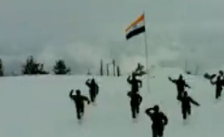 మన దేశాన్ని కాపాడటంలోనే కాదు కళారంగంలోనూ తన దైన ప్రత్యేక కలిగిన సైనికులు ఎంతో మంది ఉన్నారు. అలాంటి ఘటనే ఇపుడు సోషల్ మీడియాలో చక్కర్లు కొడుతోంది. భారతదేశం ఎంత విశాలమైనదో తెలిసిందే. ఇంత పెద్ద దేశం, అందులోని ప్రజలు భద్రంగా ఉన్నారంటే అందుకు కారణం సైనికులే. శత్రు సైనికుల కంటే ప్రమాదకరమైన వాతావరణ పరిస్థితులను ఎదుర్కొంటూ, కుటుంబాలకు దూరంగా ఊంటూ విధులు నిర్వర్తించే ఆ వీర సైనికులు నిజంగా త్యాగధనులే. ప్రస్తుతం దేశంలో చలికాలం కావడంతో ఉత్తర కశ్మీర్ లో ఎక్కడిక్కడ మంచు పేరుకుపోతోంది. ఇలాంటి పరిస్థితుల్లోనూ కుప్వారా జిల్లాలో సైనికులు విధులు నిర్వర్తిస్తున్నారు. భారత సైన్యానికి చెందిన ఓ బృందం త్రివర్ణ పతాకం ముంగిట ప్రదర్శించిన ఖుక్రీ డ్యాన్స్ వీడియో సామాజిక మాధ్యమాల్లో ఆకట్టుకుంటోంది. ఖుక్రీ అనేది ఓ వంపు తిరిగిన కత్తి. గూర్ఖా రెజిమెంట్ లో ఉండే సైనికులు తుపాకీతో పాటు దీన్ని కూడా ధరిస్తుంటారు. కాగా, సంగీతానికి అనుగుణంగా జవాన్లు ప్రదర్శించిన ఖుక్రీ విన్యాసాల వీడియోను భారత సైన్యం పంచుకుంది.