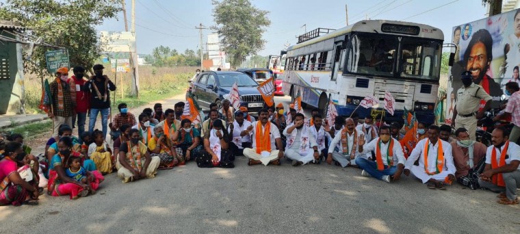చిత్తూరు జిల్లా, చంద్రగిరి నియోజకర్గం రామచంద్రపురం మండలం, రామాపురంలో జనసేన, బీజేపీ నాయకులు ఆందోళన చేపట్టారు. బీజేపీ నిజనిర్ధారణ కమిటీ సభ్యులపై వైసిపి నాయకులు దాడులు చేశారని ఆరోపించారు. దాడికి పాల్పిడీన వారిని అరెస్ట్ చేయాలని డిమాండ్ చేశారు. జనసేన, బీజేపీ చంద్రగిరి నియోజకవర్గం నాయకులు రామచంద్రపురంలో ధర్నా నిర్వహించారు. ఈ కార్యక్రమంలో జిల్లా కార్యదర్శి దేవర మనోహర గారు, జనసేన పార్టీ రాష్ట్ర కార్యదర్శి సుభాషిణి గారు, జనసేన పార్టీ మండల అధ్యక్షులు సంజీవ హరి గారు, ఉపాధ్యక్షులు కిరణ్ గారు, పవన్, ఢిల్లీ, వాసు, లోకేష్ మరియు బిజెపి మండల అధ్యక్షులు జనార్దన్ నాయుడు గారు ఉపాధ్యక్షులు శంకర్ రెడ్డి గారు మరియు ఇతర జనసేన మరియు బీజేపీ నాయకులు మరియు జనసైనికులు పాల్గొన్నారు.