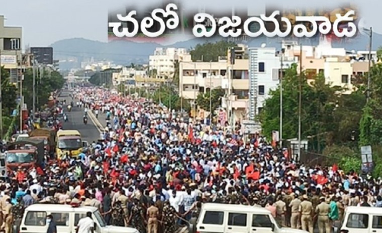 పీఆర్సీ జీవోలకు వ్యతిరేకంగా పీఆర్సీ సాధన సమితి పిలుపు మేరకు చేపట్టిన ‘చలో విజయవాడ’కు భారీ సంఖ్యలో ఉద్యోగులు తరలివచ్చారు. జిల్లాల్లో పోలీసులు ఎక్కడికక్కడ అడ్డుకునే ప్రయత్నాలు చేసినా వాళ్లను ఛేదించుకుని మరీ విజయవాడ చేరుకున్నారు. రాష్ట్రం నలుమూలల నుంచి వచ్చిన ఉద్యోగులు, ఉపాధ్యాయులు విజయవాడలో భారీ ప్రదర్శన నిర్వహించారు. ఎన్జీవో భవన్ నుంచి అలంకార్ థియేటర్ కూడలి మీదుగా బీఆర్టీఎస్ రోడ్డు వైపు ర్యాలీగా ముందుకు సాగారు. ఉద్యోగులతో విజయవాడ జనసంద్రంగా మారింది.