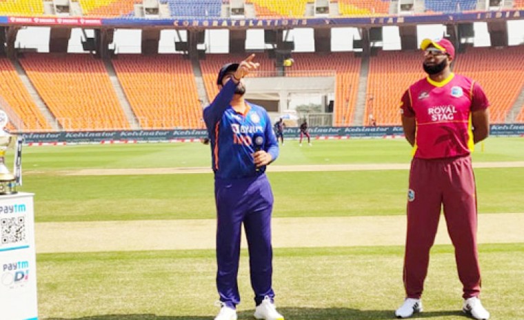 మూడు వన్డేల సిరీస్ లో భాగంగా వెస్టిండీస్ తో జరుగుతున్న తొలి వన్డేలో టాస్ గెలిచిన టీమిండియా కెప్టెన్ రోహిత్ శర్మ బౌలింగ్ ఎంచుకున్నాడు. ఈ మ్యాచ్ అహ్మదాబాద్ లోని నరేంద్ర మోదీ స్టేడియంలో జరుగుతోంది. వెస్టిండీస్ మొదట బ్యాటింగ్ చేయనుంది. ఈ మ్యాచ్ టీమిండియాకు 1000వ వన్డే కానుంది.