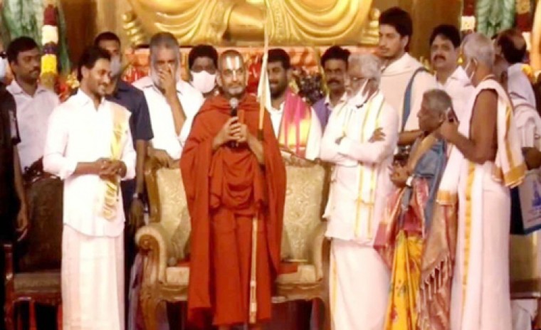 శంషాబాద్ ఎయిర్ పోర్టులో దిగిన సీఎం రోడ్డు మార్గంలో ముచ్చింతల్ చేరుకున్నారు. సంప్రదాయ దుస్తుల్లో జగన్ తొలుత ప్రవచన మండపానికి చేరుకున్నారు. చినజీయర్ స్వామి సమక్షంలో ప్రవాస భారతీయ చిన్నారుల విష్ణు సహస్రనామ అవధానాన్ని వీక్షించారు. ఈ సందర్భంగా సీఎం మాట్లాడుతూ. అసమానతలను రూపుమాపేందుకు రామానుజాచార్యులు కృషి చేశారన్నారు. వెయ్యేళ్ల క్రితమే అసమానతలకు వ్యతిరేకంగా పోరాడారని చెప్పారు. ఇలాంటి గొప్పకార్యక్రమం నిర్వహిస్తున్న చినజీయర్ స్వామికి అభినందనలు తెలిపారు. రామానుజ స్వామి కార్యక్రమాలను మరింత ముందుకు తీసుకెళ్లాలని ఆకాంక్షించారు. సమతామూర్తి విగ్రహం భావితరాలకు స్ఫూర్తిగా నిలుస్తుందన్నారు. అనంతరం చిన్నారులు ప్రజ్ఞా పుస్తకాలను సీఎంకు బహూకరించారు. అక్కడి నుంచి సహస్రాబ్ది ఉత్సవాల్లో భాగంగా ఏర్పాటు చేసిన సమతామూర్తి విగ్రహాన్ని సీఎం దర్శించుకున్నారు.