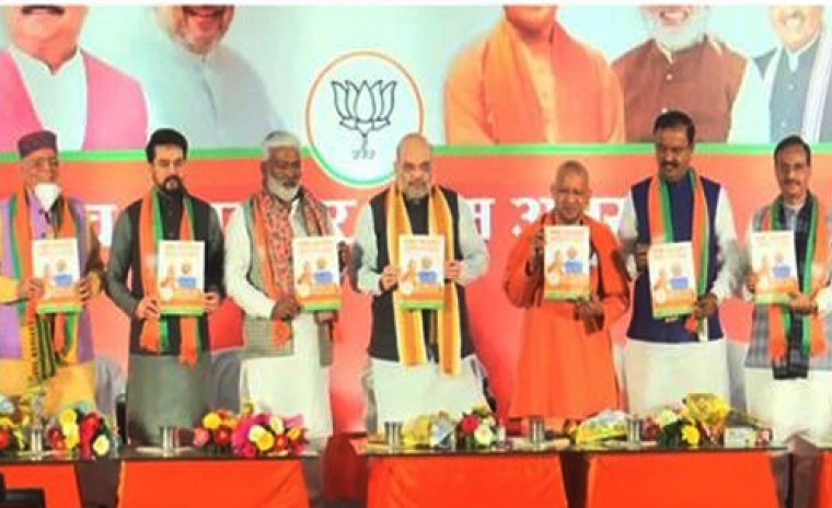 యూపీలో మొదటి దశ ఎన్నికలకు ముందు ప్రచారం ముగియడానికి కొన్ని గంటల ముందు బిజెపి మంగళవారం తన మేనిఫెస్టోను విడుదల చేసింది. లోక్ కళ్యాణ్ సంకల్ప్ పత్ర-2022 పేరిట దానికి నామకరణం చేసింది. లక్నోలో బీజేపీ సీనియర్ నేత, కేంద్ర హోంమంత్రి అమిత్ షా, యూపీ సీఎం యోగి ఆదిత్యనాథ్ మేనిఫెస్టో రిలీజ్ చేశారు. ఇందులో లవ్ జిహాద్ చట్టాన్ని ఉల్లంఘించిన వారికి పదేళ్ల జైలుశిక్ష, రూ.లక్ష జరిమానా విధిస్తామని పార్టీ హామీ ఇచ్చింది. రాష్ట్రంలోని మొత్తం 18 డివిజన్లలో అవినీతి నిరోధక విభాగాన్ని ఏర్పాటు చేస్తానని హామీ ఇచ్చారు. రైతులకు నీటిపారుదల కోసం ఉచిత విద్యుత్, బోర్వెల్స్ ఏర్పాటుకు నిధులు ఇస్తామని భరోసా ఇచ్చారు. రామమందిర నిర్మాణం జరుగుతున్న అయోధ్యలో సంస్కృతి, శాస్త్రాలు, రాముడిపై పరిశోధన కోసం రామాయణ విశ్వవిద్యాలయాన్ని ఏర్పాటు చేస్తామని పార్టీ ప్రకటించింది. వృద్ధులు, పురోహితులు, పురోహితులకు సంక్షేమ పథకాలు అమలు చేసేందుకు బోర్డును ఏర్పాటు చేస్తారు.