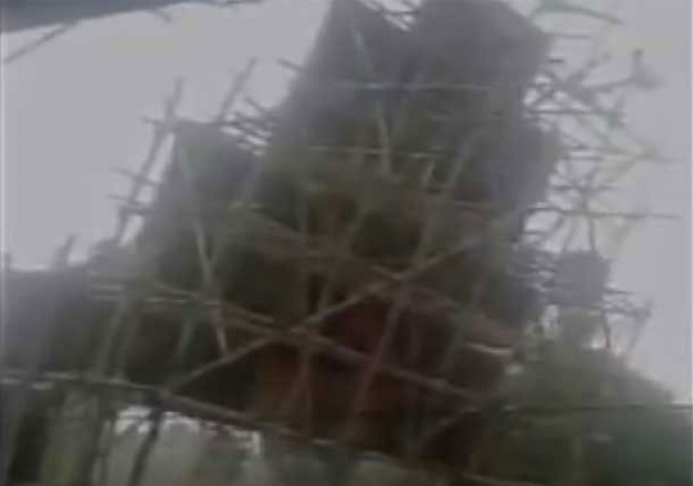 వెస్ట్ బెంగాళ్: రాష్ట్రంలోని ఈస్ట్ మిడ్నాపూర్లో దుర్గటన జరిగింది. దుర్గామాత మండపం ముందు కట్టిన కమాన్ రోడ్డు మీద ఒక్కసారిగా కుప్పకూలి పోయింది. అయితే.. ఆసమయంలో రోడ్డు మీద వాహనాలు రాకపోవడంతో పెను ప్రమాదం తృటిలో తప్పింది. ఒక్కసారిగా బలమైన గాలులు వీయడంతో కమాన్ కుప్పకూలిపోయింది. ఈ ఘటనకు సంబంధించిన వీడియో ఇదే.