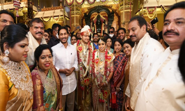 ఆంధ్ర ప్రదేశ్ రాష్ట్ర మునిసిపల్ శాఖ మంత్రి బొత్స సత్యనారాయణ కుమారుడి వివాహ వేడుకలు హైదరాబాద్ లో ఘనంగా నిర్వహించారు. ఈ వివాహా వేడుకకు హాజరై సీఎం శ్రీ వైయస్ జగన్ దంపతులు నూతన వధూవరులను ఆశీర్వదించారు.. మాదాపూర్ హైటెక్స్ కన్వెన్షన్స్లో జరిగిన వివాహ వేడుకలో వరుడు డాక్టర్ లక్ష్మీనారాయణ్ సందీప్, వధువు పూజితలను ఆశీర్వదించిన ముఖ్యమంత్రి దంపతులు మరియు ఈ కార్యక్రమంలో చాల మంది అతిరధ మహాశయులు పాల్గొన్నారు.