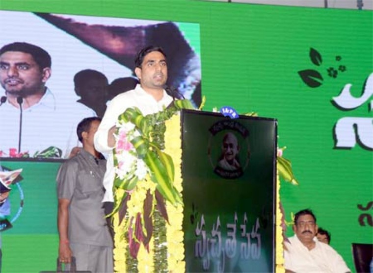 అమరావతిలో ‘స్వచ్ఛతే సేవ’ కార్యక్రమంలో మంత్రి నారా లోకేశ్ పాల్గొన్నారు. ఏపీ గ్రామాల్లో సమస్యల పరిష్కారానికి సీఎం చంద్రబాబునాయుడు భారీగా నిధులు కేటాయిస్తున్నారని అన్నారు. ఆయన మాట్లాడుతూ, మన దేశానికి స్వాతంత్ర్యం వచ్చి డెబ్భై ఏళ్లు అవుతున్నా గ్రామాల్లో సమస్యలు ఇంకా ఉన్నాయని అన్నారు. గత మూడేళ్లలో గ్రామాల్లో 13 వేల కిలోమీటర్ల సీసీ రోడ్లు నిర్మించామని, 3,995 పంచాయతీల్లో వంద శాతం వ్యక్తిగత మరుగుదొడ్లు నిర్మించామని అన్నారు. 2019 నాటికి గ్రామాల్లో మౌలిక వసతుల కల్పన పూర్తి చేస్తామని లోకేశ్ హామీ ఇచ్చారు. గ్రామాల్లో ‘స్వచ్ఛ పంచాయతీ’ కార్యక్రమాన్ని ప్రారంభించనున్నామని, ‘స్వచ్ఛ ఏపీ’లో అన్ని వర్గాల ప్రజలు భాగస్వామ్యం కావాలని ఈ సందర్భంగా లోకేశ్ పిలుపు నిచ్చారు. ఏపీని త్వరలోనే బహిరంగ మల, మూత్ర విసర్జన రహిత రాష్ట్రంగా మారుస్తామని చెప్పారు.