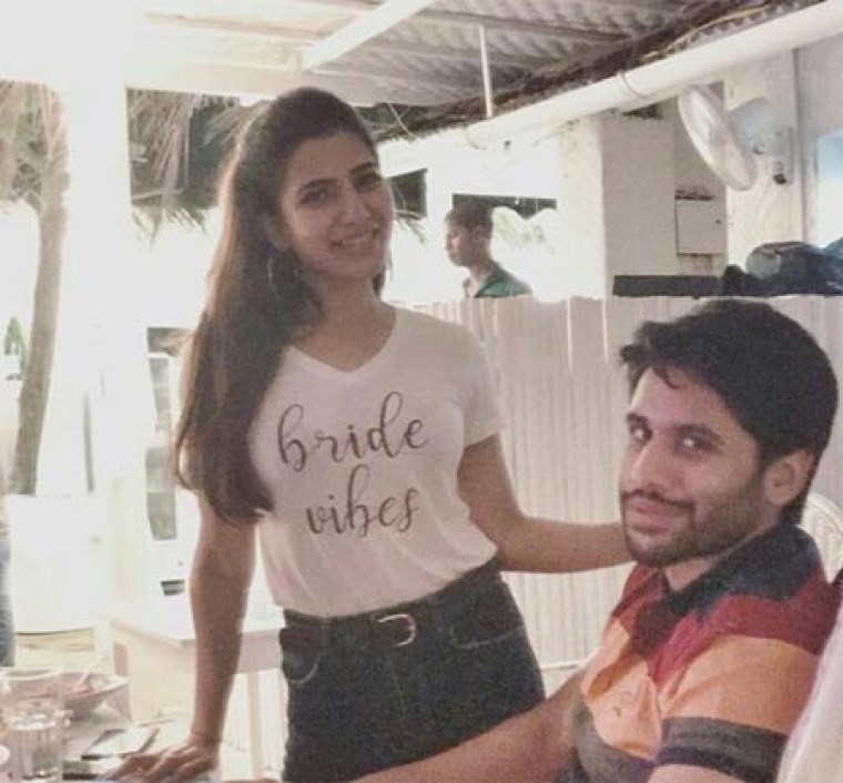 టాలీవుడ్ మోస్ట్ క్రేజీ కపుల్ నాగ చైతన్య, సమంత మరి కొద్ది గంటలలో పెళ్లి పీటలెక్కనున్న సంగతి తెలిసిందే. వీరి వివాహం కొద్ది మంది సమక్షంలో చాలా సింపుల్ గా జరగనుందని నాగ్ ఇప్పటికే ప్రకటించాడు. కాని ఈ వివాహంపై అభిమానులతో పాటు సెలబ్రిటీలలోను చాలా ఆసక్తి నెలకొంది. మోస్ట్ హ్యపెనింగ్ వెడ్డింగ్ గా చెప్పుకొస్తున్న నాగ చైతన్య, సమంతల ప్రేమ వివాహం అక్టోబర్ 6, 7 తేదీలలో గోవాలో జరగనుంది. అక్కినేని ఫ్యామిలీ, దగ్గుబాటి ఫ్యామిలీ, సమంత ఫ్యామిలీతో పాటు అత్యంత సన్నిహితులు ఈ వేడుకలో పాల్గొననున్నట్టు సమాచారం.అయితే పెళ్లి ఘడియలు దగ్గర పడుతుండడంతో వివాహ ఏర్పాట్లు చురుకుగా సాగుతున్నాయి. సమంత, చైతూలు కుటుంబ సభ్యులతో కలిసి ఆనంద క్షణాలు గడుపుతున్నారు. తాజాగా సమంత, చైతూ కలిసి ఉన్న ఓ ఫోటో సోషల్ మీడియాలో వైరల్ గా మారింది. బ్రైడ్ విషెస్ అని రాసి ఉన్న టీ షర్ట్ ధరించిన సమంత, చైతూతో కలిసి ఫోటోకి ఫోజులిచ్చింది. ఇందులో ఇద్దరు చాలా హ్యపీగా కనిపిస్తున్నారు. 6న హిందూ సంప్రదాయ పద్ధతిలో జరగనున్న వీరి వివాహం 7న సమంత కుటుంబం ఆచరించే క్రైస్తవ సంప్రదాయ పద్ధతిలో జరగనుంది. మరి కొంత గ్యాప్ లో రిసెప్షన్ ని హైదరాబాద్ లో గ్రాండ్ గా నిర్వహించనున్నారు. స్టైలిష్ డిజైనర్ క్రేషా బజాజ్ డిజైన్ చేసిన దుస్తులనే సమంత ధరించనుందని సమాచారం.