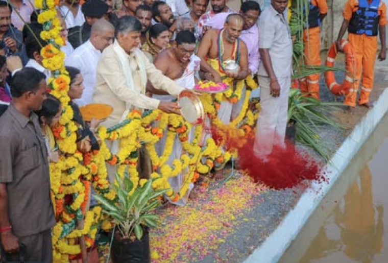 అన్ని పండుగల కంటే ముఖ్యమైన పండుగ ‘జలసిరికి హారతి’ అని ముఖ్యమంత్రి చంద్రబాబునాయుడు అన్నారు. విశాఖ జిల్లా కశింకోట మండలం నర్సాపురం గ్రామంలో ‘జలసిరికి హారతి’ కార్యక్రమానికి ఆయన శ్రీకారం చుట్టారు. ఈ సందర్బంగా శారదా నదికి హారతి ఇచ్చిన ముఖ్యమంత్రి నర్సాపురం ఆనకట్టను ప్రారంభించారు. అనంతరం బహిరంగ సభలో చంద్రబాబు మాట్లాడుతూ మన జీవితాలకు వెలుగులు తెచ్చే పండుగ ‘జలసిరికి హారతి’. మన జీవన ప్రమాణాలు సక్రమంగా ఉండాలంటే ప్రకతిని ఆరాధించాలి. మనకు తిండినిచ్చే రైతులను గౌరవించడం మనందరి బాధ్యత. ఎన్నికల్లో ఇచ్చిన హామీ మేరకు పింఛను రూ.వెయ్యికి పెంచాం. నాణ్యమైన విద్యుత్ సరఫరా చేస్తున్నాం. ఆడబిడ్డలు ఆత్మగౌరవంతో బతకాలనే డ్వాక్రా సంఘాలు పెట్టాం. మహిళల కోసం దీపం పథకంతీసుకొచ్చాం. భవిష్యత్తులో 80శాతం ప్రజలు సంతోషంగా ఉండేలా పాలన అందిస్తాం. ప్రజలకు మేలు చేస్తున్న పార్టీలను అందరూ ఆదరించాలి’ అని అన్నారు.
