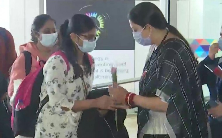 ఉక్రెయిన్ నుంచి ఇండియాకు చేరుకున్న భారతీయులకు కేంద్ర మంత్రి స్మృతీ ఇరానీ బుధవారం స్వాగతం పలికారు. పలు భాషల్లో వారికి స్వాగతం పలకడం అందరిని ఆకర్షించింది. దీనికి సంబంధించిన వీడియోలను ఓ ఆంగ్ల ఛానల్ సోషల్ మీడియాలో అప్ లోడ్ చేసింది.ఈ వీడియోలో భారతీయులకు ఆమె మళయాలం, బెంగాలీ, గుజరాతి, మరాఠీలో స్వాగతం పలుకుతున్నట్లు కనిపిస్తోంది. ఈ వీడియోలు ఇప్పుడు సామాజిక మాధ్యమాల్లో వైరల్ అవుతున్నాయి.మొదట మీకు స్వాగతం అంటూ ఆమె పలికారు. మీ కుటుంబాలు మీ కోసం అత్యంత ఉత్కంఠగా ఎదురు చూస్తున్నాయని ఆమె వారితో అన్నారు. మా ప్రార్థనలను దేవుడు విన్నాడు అని చెప్పారు.ఈ చాలెంజింగ్ సమయంలో మీరు అత్యంత ధైర్య సాహసాలను ప్రదర్శించారని తెలిపారు. ఈ సమయంలో విమాన సిబ్బందికి కూడా ధన్యవాదాలు చెబుదాం అని ఆమె పేర్కొన్నారు