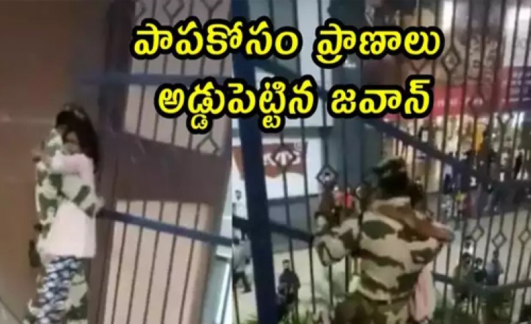 జై జవాన్...జై కిసాన్ అన్న నినాదం మనం వినేఉంటా. ఈ తరహా నినాదాలు ఎందుకొచ్చాయో తాజాగా ఘటన ఒకటి తెలియజేస్తోంది. అది సాయంత్రం 6 గంటలు. ఢిల్లీలోని నిర్మాణ్ విహార్ మెట్రో స్టేషన్ (Nirman Vihar Metro Station) రద్దీగా ఉంది. అంతలో ఓ పాప అరుపులు వినిపించాయి. ప్రయాణికులతో రష్ ఎక్కువగా ఉన్నా... ఆ 8 ఏళ్ల పాప ఏడుస్తున్న విషయం అందరికీ తెలిసింది. ఆటలాడుకుంటూ ఆ చిన్నారి మెట్రో స్టేషన్ గ్రిల్ ఎక్కేసింది. ఇక అక్కడి నుంచి కిందకు రాలేని పరిస్థితి. పట్టు జారితే ప్రాణాలకే ప్రమాదం. ఆ పాప ప్రమాదంలో చిక్కుకుందని తెలియగానే... CISF QRT టీమ్ అక్కడికి చేరుకుంది. పాపను ఎలా కిందకు తేవాలా అని అంతా ఆలోచిస్తుండగా... ఓ యంగ్ జవాన్ రంగంలోకి దిగిపోయాడు. (CISF jawan saves girl) శరవేగంగా గ్రిల్ దగ్గరకు చేరిన జవాన్... పాపకు కొన్ని సూచనలు చేశాడు. తనను గట్టిగా పట్టుకోమని చెప్పాడు. అలాగే పాప జారిపోకుండా తాను కూడా జాగ్రత్తగా పట్టుకున్నాడు. ఈ పరిస్థితుల్లో అతను జారితే... అతనికీ, పాపకు కూడా ప్రమాదమే. స్టేషన్ కింద ఎలాంటి ఏర్పా్ట్లూ లేవు. అయినా సరే ఆ జవాన్ తన ధైర్యాన్ని కోల్పోలేదు. ఒక్కో అడుగూ వేస్తూ... మెల్లమెల్లగా చిన్నారిని కిందకు తీసుకొచ్చాడు. చివర్లో మిగతా జవాన్లు, అధికారులూ పాపను అందుకొని సేవ్ చేశారు. (girl rescue operation) అప్పటివరకూ ఆ చిన్నారి ఎలా వస్తుందా అని ఎదురుచూసిన వాళ్లంతా... పాపకు ఏ హానీ జరగకుండా కాపాడటంతో ఆ జవాన్ను మెచ్చుకున్నారు. అతన్ని రియల్ హీరో అని ప్రశంసిస్తున్నారు. ఇందుకు సంబంధించిన వీడియోని CISF తన ట్విట్టర్ అకౌంట్ @CISFHQrs లో ఇవాళ పోస్ట్ చేసింది. ఆ వీడియో ఇప్పుడు వైరల్ అవుతోంది.