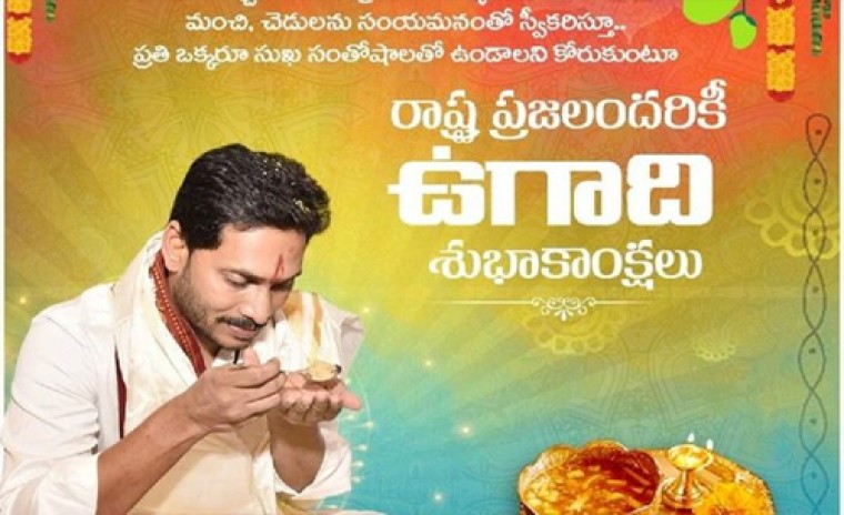 ఉగాది వేడుకల్లో సతీసమేతంగా ముఖ్యమంత్రి వై.ఎస్.జగన్మోహన్ రెడ్డి పాల్గొన్నారు. తెలుగు సంవత్సరాది ఉగాదిని పురస్కరించుకుని ఏపీలో ప్రభుత్వం తరఫున అధికారిక వేడుకలు కాసేపటి క్రితం జరిగాయి. తాడేపల్లిలోని సీఎం క్యాంపు కార్యాలయంలో ప్రత్యేకంగా తీర్చిదిద్దిన వేదికపై ప్రారంభమైన ఈ వేడుకలకు సీఎం వైఎస్ జగన్ మోహన్ రెడ్డి.. తన అర్ధాంగి వైఎస్ బారతితో కలిసి హాజరయ్యారు. తెలుగు సంప్రదాయ వస్త్రధారణలో కనిపించిన సీఎం దంపతులు అందరినీ ఆకట్టుకున్నారు.వేడుకల్లో భాగంగా తన తండ్రి వైఎస్ రాజశేఖరరెడ్డి విగ్రహానికి నివాళి అర్పించారు. ఆ తర్వాత అక్కడికి చేరుకున్న చిన్నారులతో ముచ్చటించిన జగన్.. పంచాంగ శ్రవణంలో పాలుపంచుకున్నారు. ఈ కార్యక్రమంలో వైసీపీకి చెందిన కీలక నేతలు, పలువురు మంత్రులు, ఎమ్మెల్యేలు తదితరులు పాల్గొన్నారు.