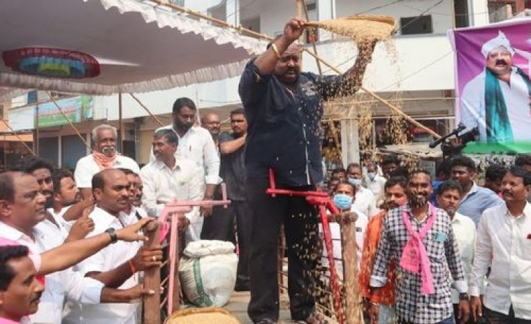 కేంద్ర తీరుపై మంత్రి గంగుల కమలాకర్ తీవ్ర నిరసన వ్యక్తంచేశారు. యాసంగి ధాన్యం కొనుగోలు అంశంలో కేంద్రంతో టీఆర్ఎస్ సర్కారు తీవ్ర పోరాటం చేస్తోంది. కేంద్రం తీరుకు నిరసనగా తెలంగాణ అధికార పక్షం రాష్ట్రవ్యాప్తంగా నిరసనలకు పిలుపునిచ్చింది. ఈ క్రమంలో మంత్రి గంగుల కమలాకర్ కరీంనగర్ జిల్లాలో జరిగిన నిరసన ప్రదర్శనల్లో నల్ల దుస్తులు ధరించి పాల్గొన్నారు. తెలంగాణలో పండిన ధాన్యాన్ని కేంద్రం కొనుగోలు చేయాలంటూ ఆందోళన చేపట్టారు. దీక్షా వేదిక వద్ద ధాన్యాన్ని తూర్పారబట్టి తన నిరసన తెలియజేశారు. ఈ సందర్భంగా మంత్రి మాట్లాడుతూ, కేంద్రంలోని బీజేపీ సర్కారు తెలంగాణ రాష్ట్రం పట్ల కక్ష సాధింపు చర్యలు మానుకోవాలని హితవు పలికారు. తెలంగాణలో పండిన ప్రతి గింజను కొనేదాకా కేసీఆర్ అధ్యక్షతన కేంద్రంపై పోరాటం కొనసాగుతుందని గంగుల కమలాకర్ స్పష్టం చేశారు. ధాన్యం కొనకుండా తప్పించుకోవాలని చూస్తే తెలంగాణలో బీజేపీకి నూకలు చెల్లినట్టేనని ఉద్ఘాటించారు. ధాన్యం కొనుగోలు బాధ్యత కేంద్రానిదేనని రాజ్యాంగం కూడా చెబుతోందని, కానీ కేంద్రమంత్రి పియూష్ గోయల్ తన వ్యాఖ్యలతో ప్రజలను తప్పుదోవ పట్టించే ప్రయత్నం చేస్తున్నారని ఆగ్రహం వ్యక్తం చేశారు. బండి సంజయ్ కు చిత్తశుద్ధి ఉంటే కేంద్రంతో వరి ధాన్యం కొనుగోలు చేయించాలని డిమాండ్ చేశారు.