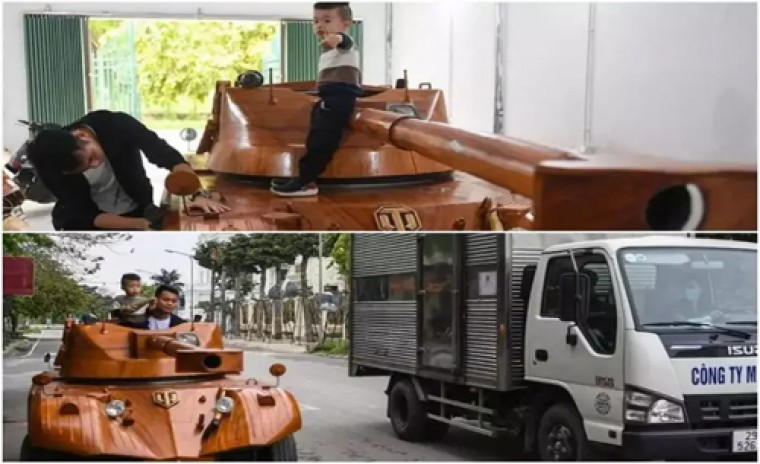పుత్రవాత్సల్యం ఎవరినైనా ఎంతటి పనినైనా చేయిస్తుంది. సహజంగా కొడుకు మీద ప్రేమతో తండ్రులు... బైక్లు, కార్లు కొనిస్తుంటారు. కొంతమంది తమ తాహతుకు మించే వారి కోరికలు తీరుస్తుంటారు. లేదా వారి కోసం ఇంకా ఎక్కువ కష్టపడుతుంటారు. అంతగా తమ బిడ్డలను ప్రేమిస్తుంటారు. అలాగే వియత్నాంలో ఓ వ్యక్తి తన కొడుకు కోసం అంతే కష్టపడ్డాడు. తన గారాల తనయుడు కోసం మూడు నెలలు కష్టపడ్డాడు. పైగా లక్షలాది రూపాయలు ఖర్చు చేశాడు. వియత్నాం రాజధాని హనోయికి తూర్పున ఉన్న బాక్ నిన్హ్ ప్రావిన్స్కు చెందిన ట్రూంగ్ వాన్ దావోకు 16 సీట్ల మినీ బస్సు ఉండేది. తన కొడుకు కోసం ట్రూంగ్ వాన్ దావో ఆ మినీ వ్యాన్ను చెక్కతో యుద్ధ ట్యాంకులా మార్చాలనుకున్నాడు. అనుకున్న వెంటనే పని మొదలుపెట్టాడు. అయితే దానిని చెక్క యుద్ధ ట్యాంకుగా మార్చడానికి చాలా కష్టపడాల్సి వచ్చింది. అంటే వారు అనుకున్న విధంగా 9.1 అడుగుల పొడవుతో ఫ్రెంచ్ EBR105 మోడల్గా మార్చడానికి మూడు నెలలు పట్టింది. దీనికోసం ట్రూంగ్ వాన్ దావో ముందు మినీ వ్యాన్ నుంచి విడివిడి భాగాలను బయటకు తీశాడు. దాని ప్రధాన ఇంజన్ను, ఫ్లోర్ను అలాగే ఉంచి, చెక్క ట్యాంక్కు అవసరమైన అన్ని గేర్లకు సరిపోయేలా లోపలి భాగాన్ని తిరిగి అమర్చాడు. అయితే తయారీలో చక్రాలను అమర్చడమే కష్టతరమైందని దావో చెప్పాడు. ఎందుకంటే యుద్ధ ట్యాంకుకు చక్రాలన్నీ ఏకకాలంలో కదలాలి, అలా అమర్చడానికి చాలా రోజులు పట్టిందంట.