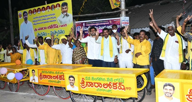 మంగళగిరి నియోజకవర్గం పర్యటనలో భాగంగా తాడేపల్లి టౌన్ నులకపేట ప్రాంతంలో టీడీపీ యువ నాయకులూ నారా లోకేష్ పర్యటించారు. చిరు వ్యాపారులకు తన వంతు సాయంగా తోపుడు బల్లు అందించారు. ప్రజలు ఆయనతో మాట్లాడుతూ గెలిస్తే ఇళ్ల పట్టాలు ఇస్తానన్న ఎమ్మెల్యే ఆర్కే మోసం చేసారని ప్రజలు తమ బాధను వ్యక్తం చేసారు. ఇళ్ల పట్టాల సమస్య పై పోరాడతామని వారికి లోకేష్ హామీ ఇచ్చారు. ఒకవేళ ఈ ప్రభుత్వం పట్టాలు ఇవ్వకపోతే టిడిపి ప్రభుత్వం వచ్చిన వెంటనే పట్టాలు ఇస్తానని హామీ ఇచ్చారు. ఈ సందర్భంగా లోకేష్ మాట్లాడుతూ.. రాక్షసుడు జగన్ పాలనలో జనాలు పడుతున్న ఇబ్బందులు చూస్తే బాధేస్తుంది. ఇంటి పన్ను, చెత్త పన్ను, విద్యుత్ ఛార్జీల పేరుతో ప్రజల జేబులు ఖాళీ చేస్తున్నారు. సంపాదన అంతా జే ట్యాక్స్ కట్టడానికే సరిపోతుంది ఇక బ్రతికేది ఎలా అంటూ ప్రజలు ఆవేదన వ్యక్తం చేసినట్లు తెలిపారు.