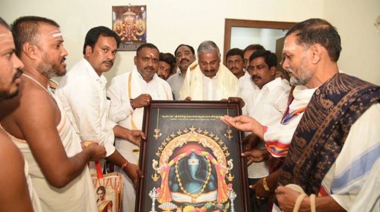 డాక్టర్ మంత్రి పెద్దిరెడ్డి రామచంద్రా రెడ్డి ని పూతలపట్టు ఎమ్మెల్యే ఎం ఎస్ బాబు మరియు కాణిపాకం ఆలయ ట్రస్ట్ బోర్డు ఛైర్మెన్ మోహన్ రెడ్డి , ఆలయ కార్యనిర్వహణాధికారి ఏ. వెంకటేశు , ట్రస్ట్ బోర్డు సభ్యులు నరసింహ శాస్త్రి లు సోమవారం విజయవాడలో మర్యాదపూర్వకంగా కలిసి కాణిపాకం దేవస్థానం వారిచే వేదాశీర్వచనం చేసి శేష వస్త్రము మహాప్రసాదము లను అందజేశారు. ఈ కార్యక్రమంలో వేదపండితులు పాల్గొన్నారు.