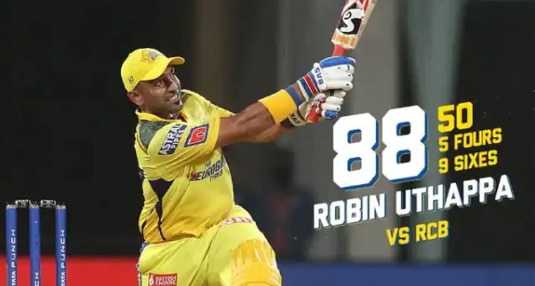 ప్రస్తుత ఐపీఎల్ సీజన్లో ఒక ఇన్నింగ్స్లో అత్యధిక సిక్సర్లు బాదిన ఆటగాడిగా చెన్నై సూపర్ కింగ్స్ ఓపెనర్ రాబిన్ ఉతప్ప రికార్డు సృష్టించాడు. మంగళవారం రాయల్ ఛాలెంజర్స్ బెంగళూరుతో జరిగిన మ్యాచ్లో 36 ఏళ్ల ఉతప్ప తన ఇన్నింగ్స్లో మొత్తం తొమ్మిది సిక్సర్లు బాదాడు. IPL 2022లో ఒక ఇన్నింగ్స్లో అత్యధిక సిక్సర్లు కొట్టిన కోల్కతా నైట్ రైడర్స్ బ్యాట్స్మెన్ ఆండ్రీ రస్సెల్ రికార్డును కూడా ఉతప్ప బద్దలు కొట్టాడు. ఏప్రిల్ 1న పంజాబ్ కింగ్స్ పై రస్సెల్ ఎనిమిది సిక్సర్లు కొట్టాడు. చెన్నై సూపర్ కింగ్స్ నాలుగు మ్యాచ్ల్లో 23 పరుగుల తేడాతో బెంగళూరును ఓడించి సీజన్లో తొలి విజయాన్ని నమోదు చేసింది.